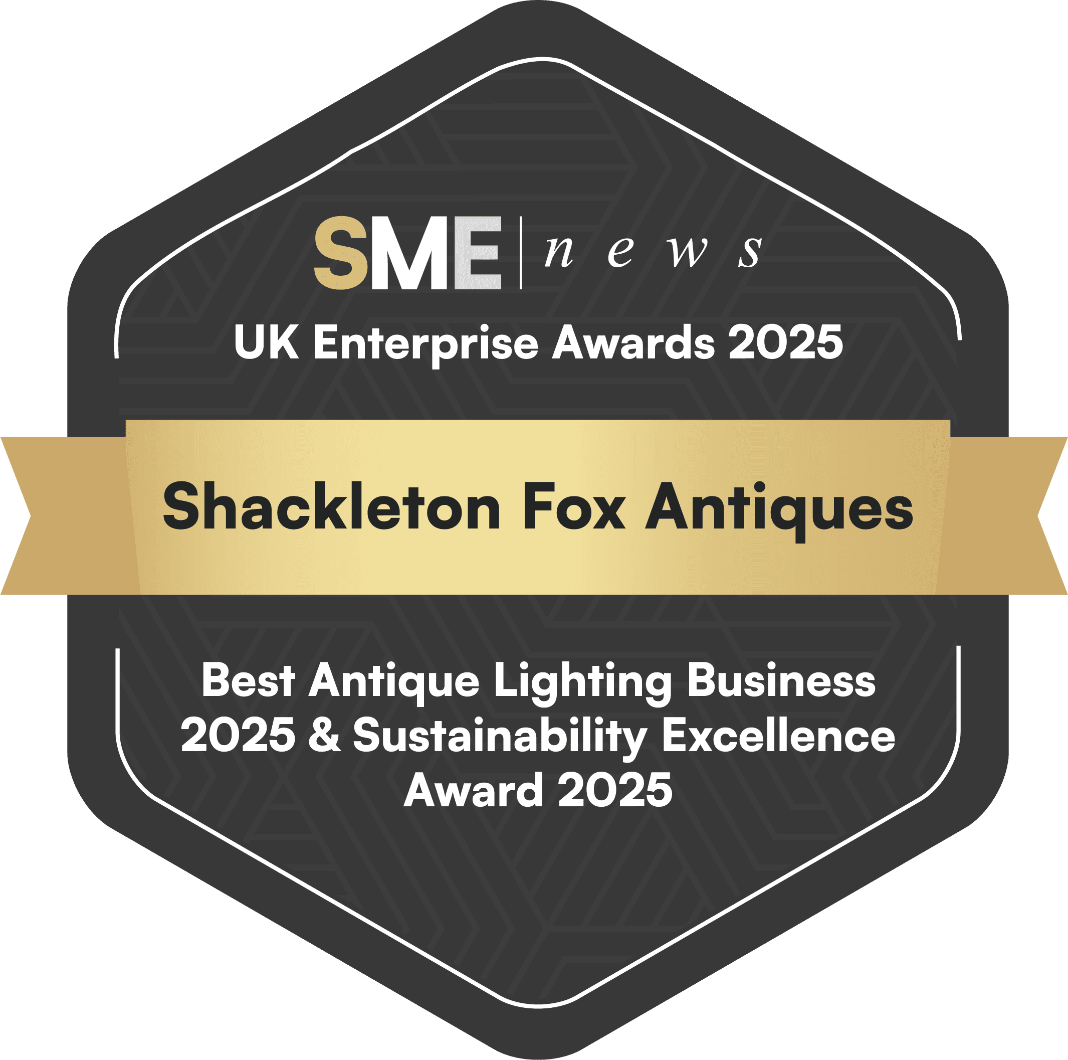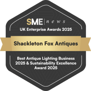 We’re thrilled to announce that Shackleton Fox Antiques has been honoured at the SME News UK Enterprise Awards 2025, receiving two prestigious accolades: 🏆 Best Antique Lighting Business 2025🌿 Sustainability Excellence Award 2025 The awards recognise our dedication to exceptional craftsmanship, customer service, and commitment to sustainability — values at the heart of everything we do. From carefully restoring antique lighting […]