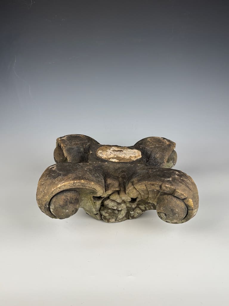 This finial stands as a superb example of its type—a piece of architectural history that marries decorative purpose with the simple, weathered beauty of natural stone. It is offered in its found, original condition, ready to be placed as a commanding focal point in a contemporary garden or, equally, to be reimagined as a unique and sculptural display stand or plant plinth within a grand interior. Its commanding presence and rich texture make it a versatile object, providing a compelling contrast to modern design.