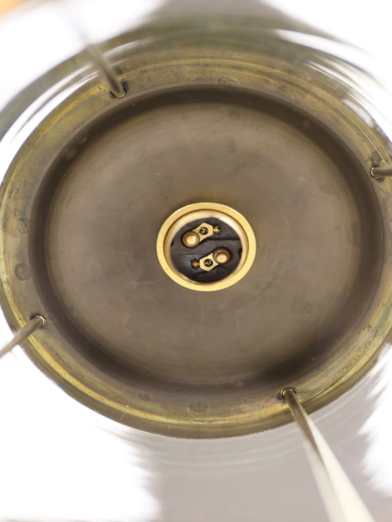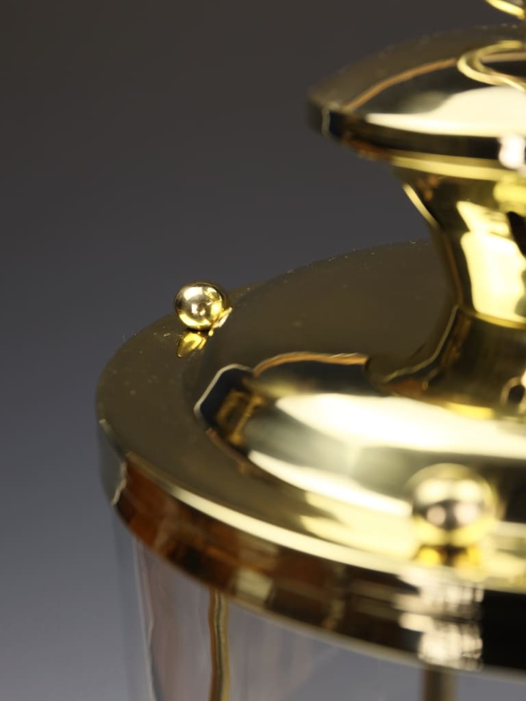 In the 1800s, French glassmakers utilised the cylinder method—blowing a large glass tube, cutting it, and flattening it while hot. This process naturally created the horizontal "waves" seen here. In an era where lighting was transitioning from oil and gas to early electricity, these lanterns were designed to maximise the warm flicker of the flame, a quality that is perfectly captured by the imperfections in this specific glass.