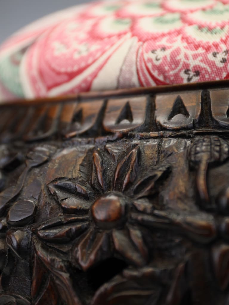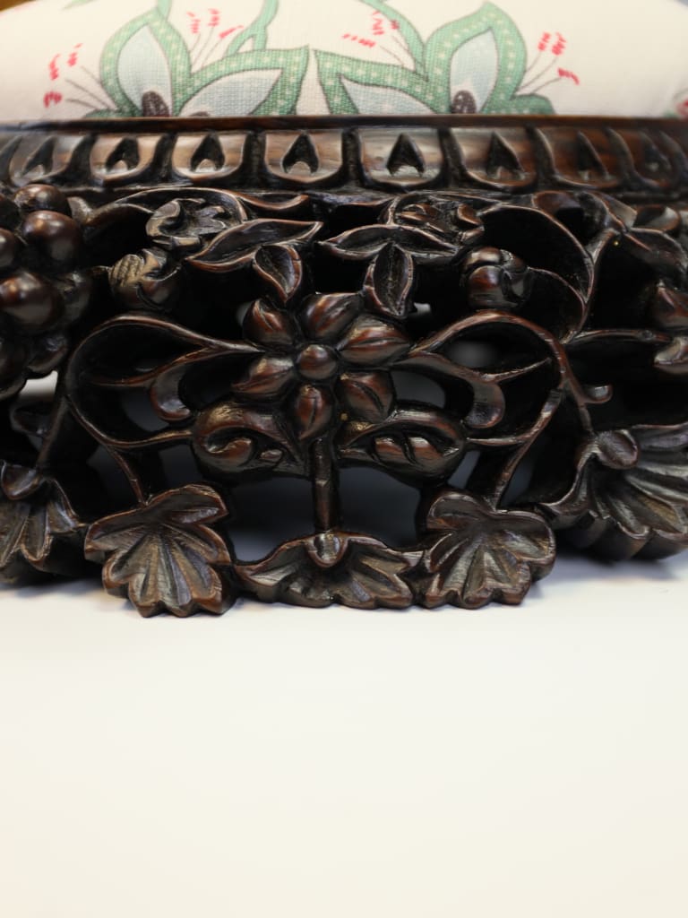 What makes this stool a 'top-tier' investment is its versatility. It possesses the 'English Country House' DNA, that specific blend of high-art carving and soft, lived-in linen, that is currently the most sought-after look in international interior design. It is a small piece that carries the weight of a gallery-quality sculpture."