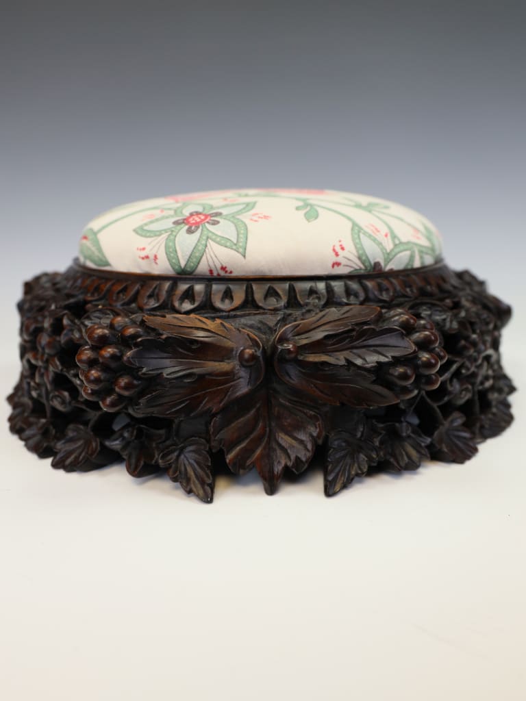 In the grand Victorian interior, such a stool was a "mobile luxury." Its heavy, legless apron construction suggests it was designed to be a "jewel" in a formal drawing room or a lady’s boudoir.