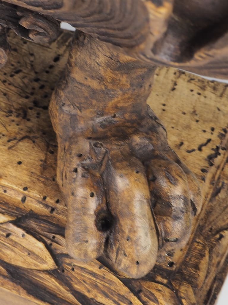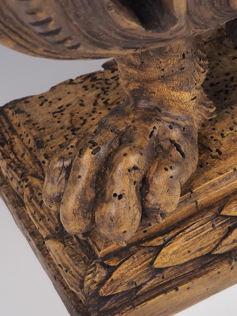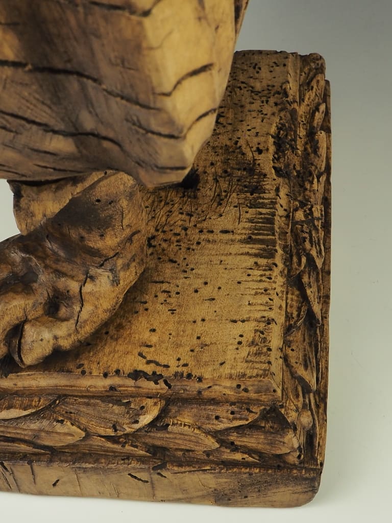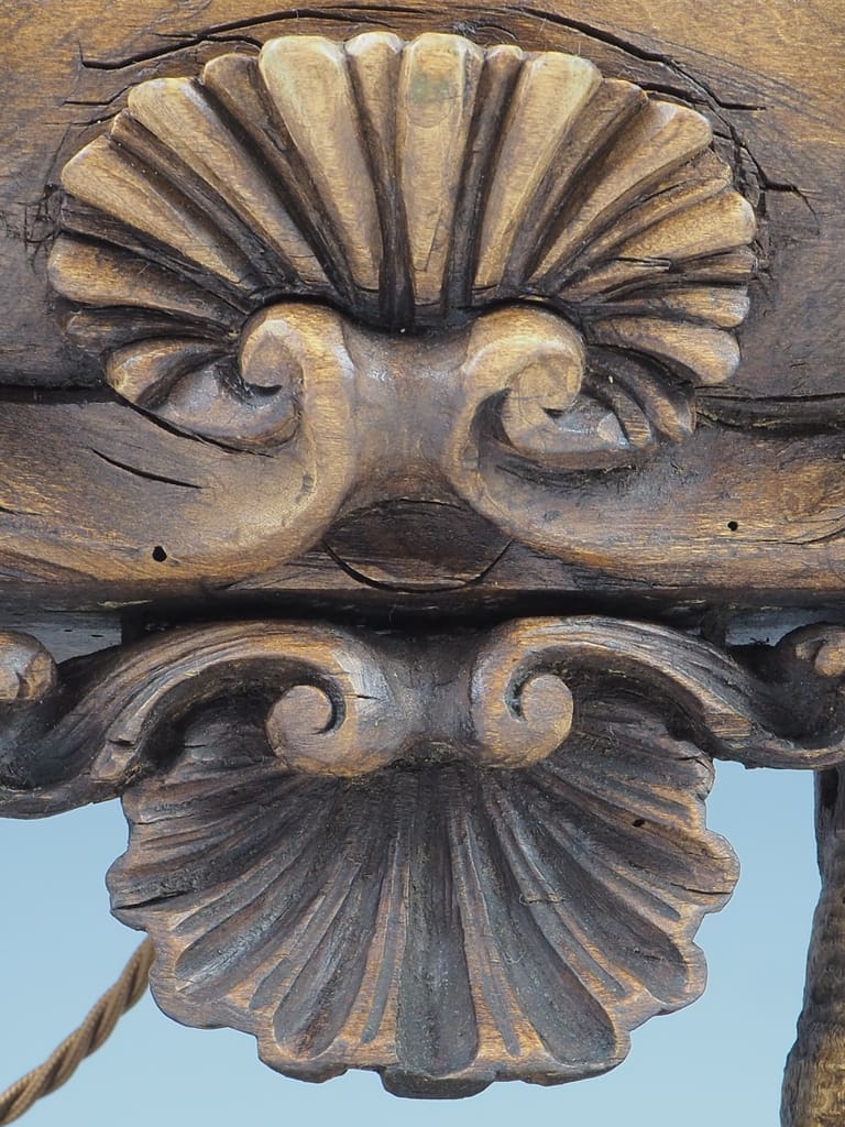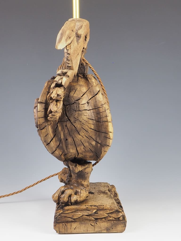 It is important to note that the wood has been treated for historic woodworm holes, which are inactive, ensuring the longevity and durability of this exquisite lamp. This attention to detail not only enhances the lamp's aesthetic appeal but also guarantees its safety and usability in contemporary settings.