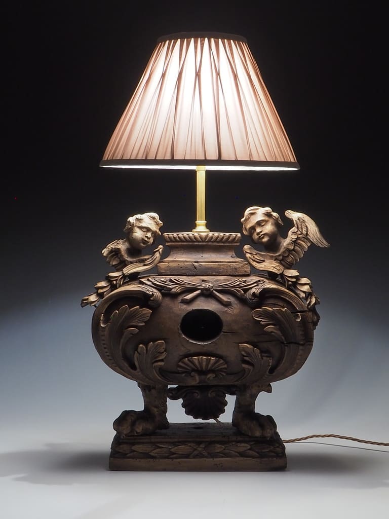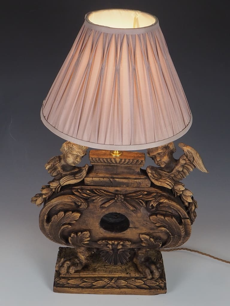 This antique 16th century carved wood reliquary table lamp is a stunning piece that seamlessly blends history with functionality.