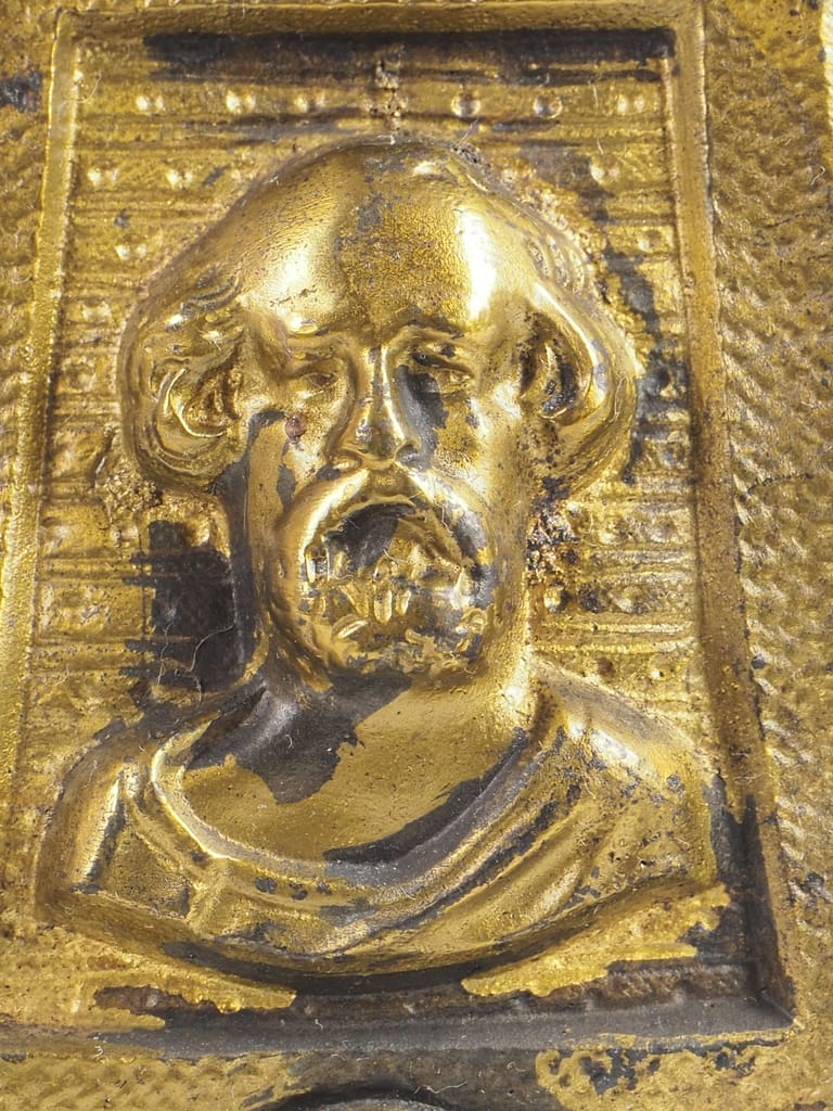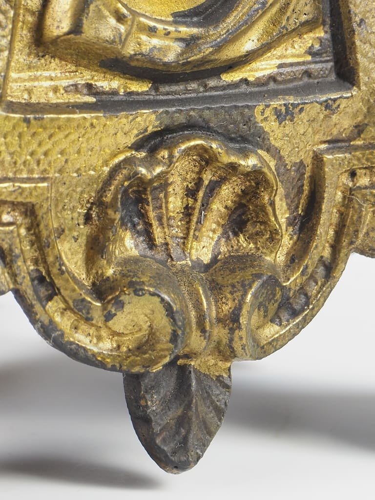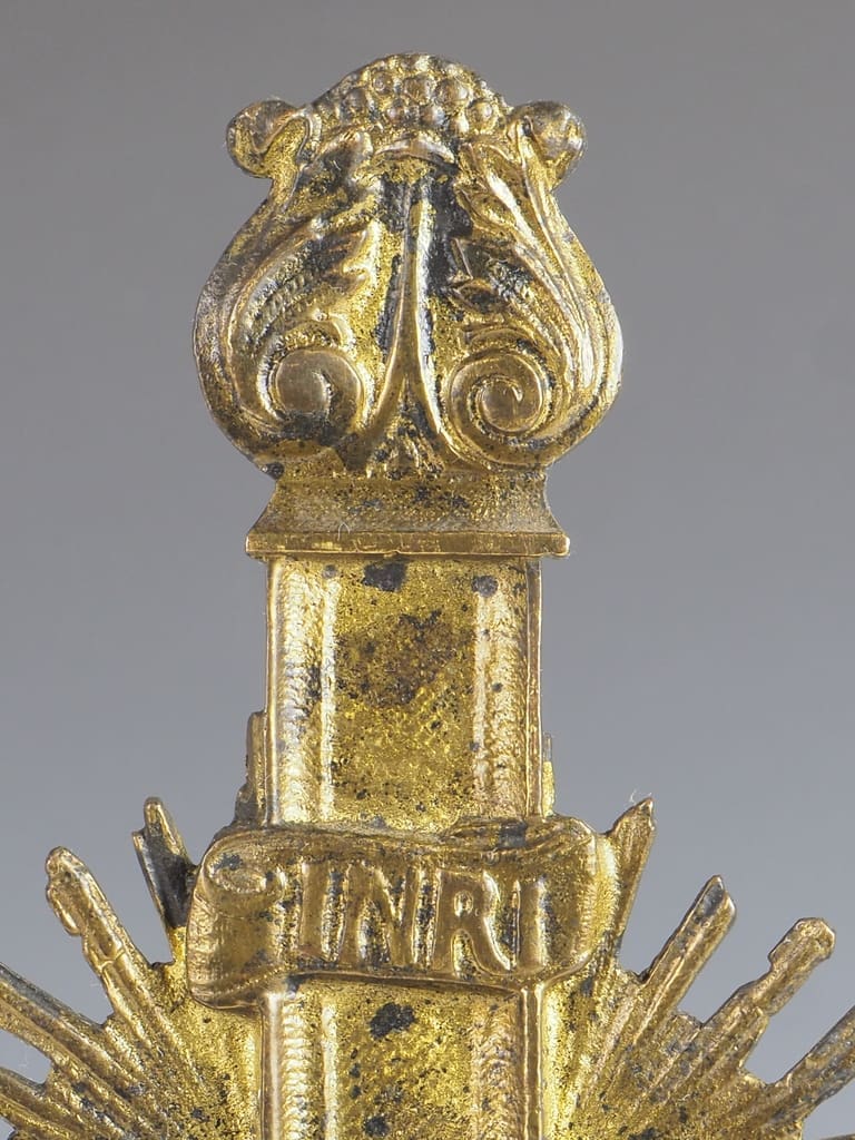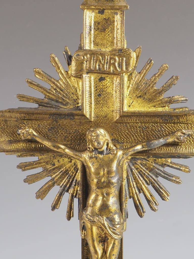 During the late 19th and early 20th centuries, Belgium was renowned for its skilled artisans and craftsmen who produced religious artefacts of exceptional quality. The use of gilt bronze in religious items like this crucifix was common, as it not only provided a luxurious appearance but also symbolised the preciousness of the divine.