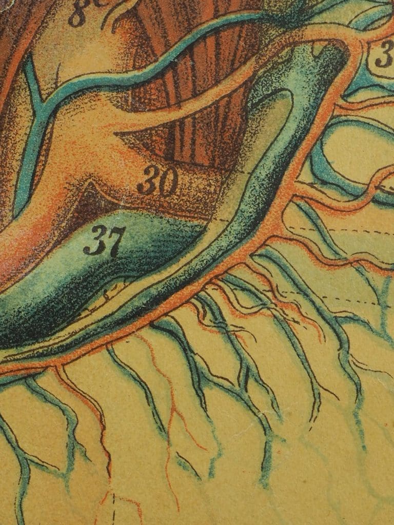 Antique anatomical chart depicting the circulatory system
