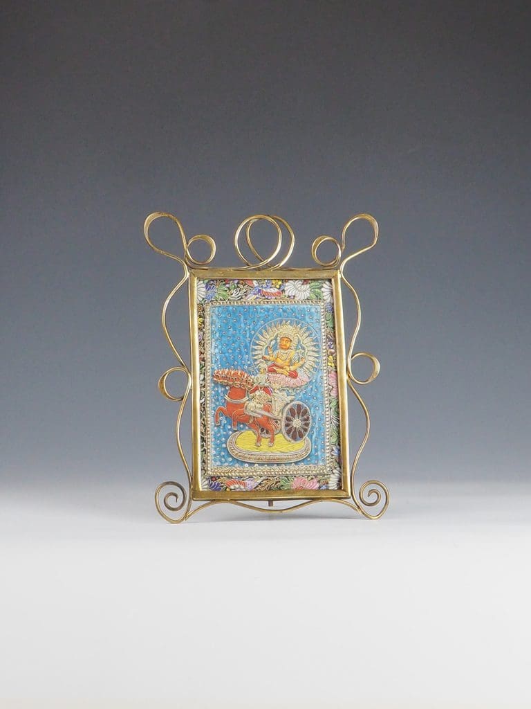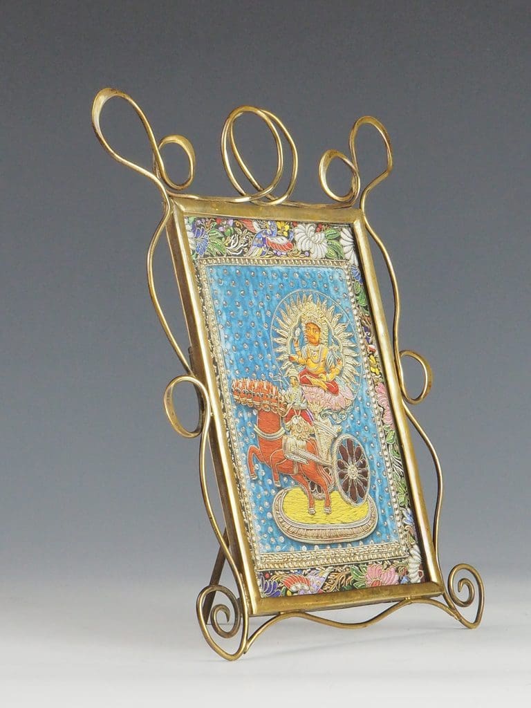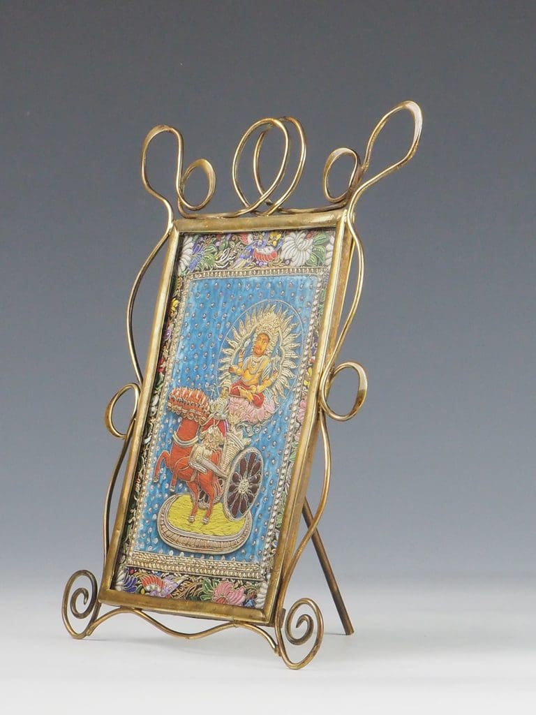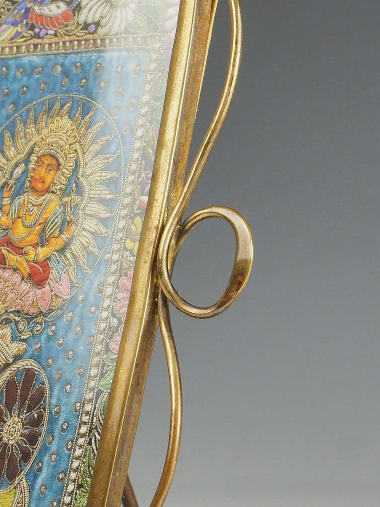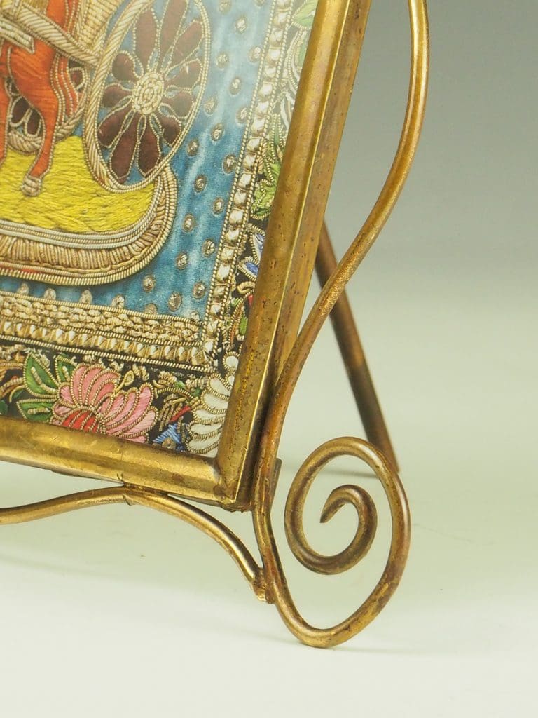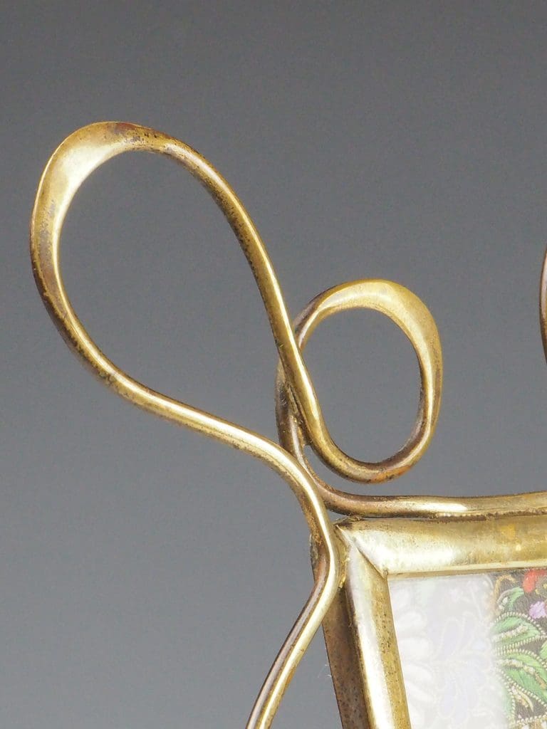 The frame retains its original brass easel stand leg, offering a blend of historical authenticity and aesthetic charm that enhances its appeal.