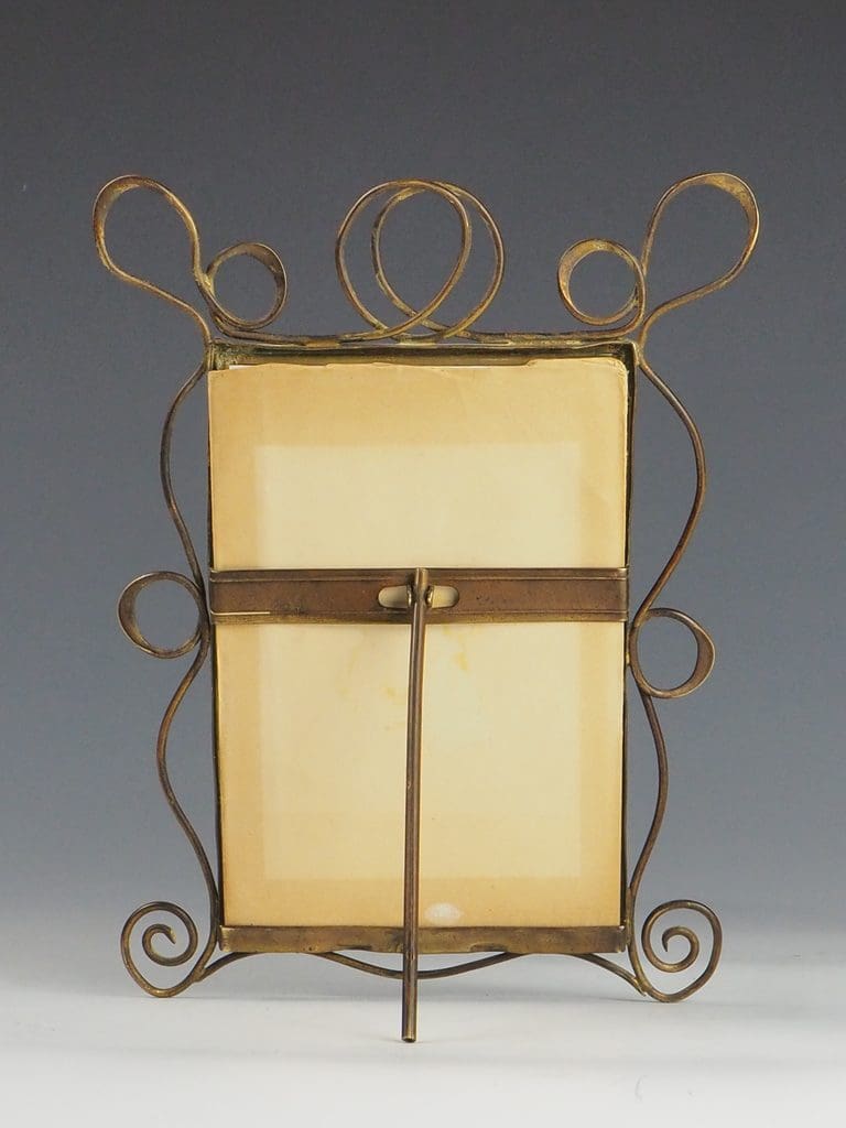 This antique brass picture frame is a captivating example of Art Nouveau design, featuring an intricate scroll work. The flowing lines and decorative detail exemplify the elegance and creativity that defined the era's artistic innovations.