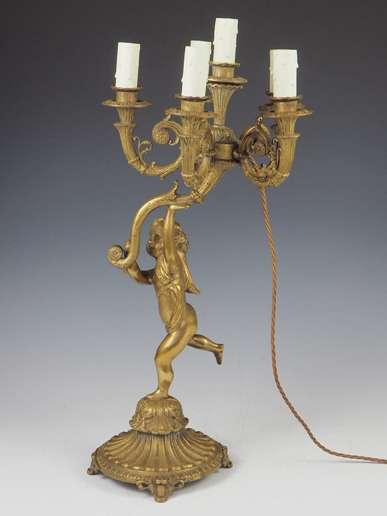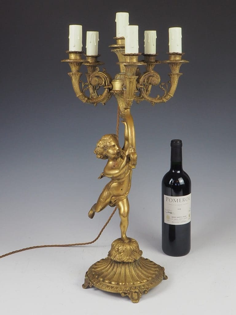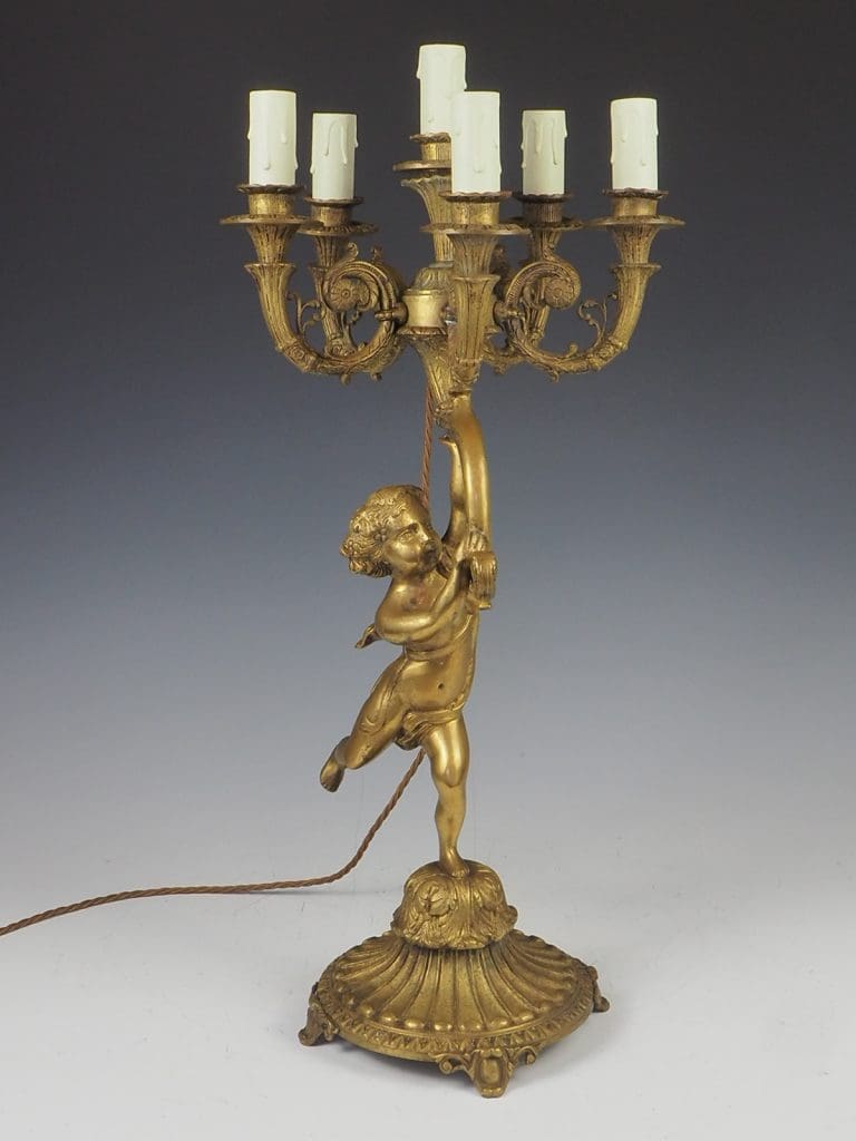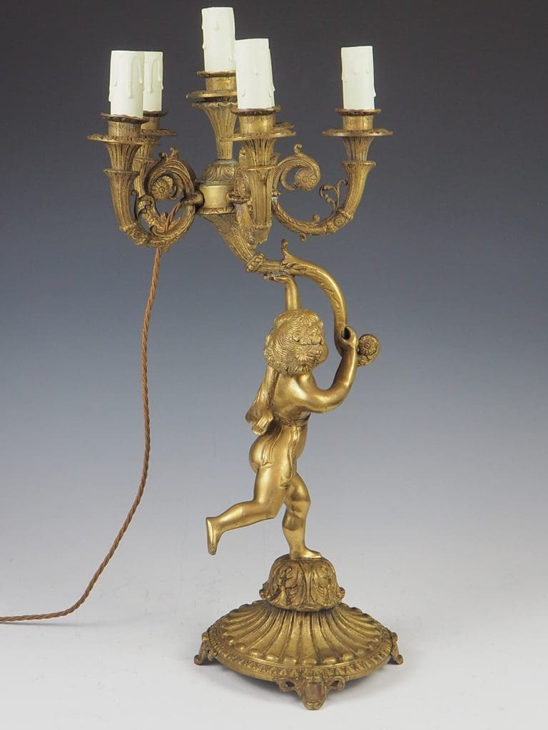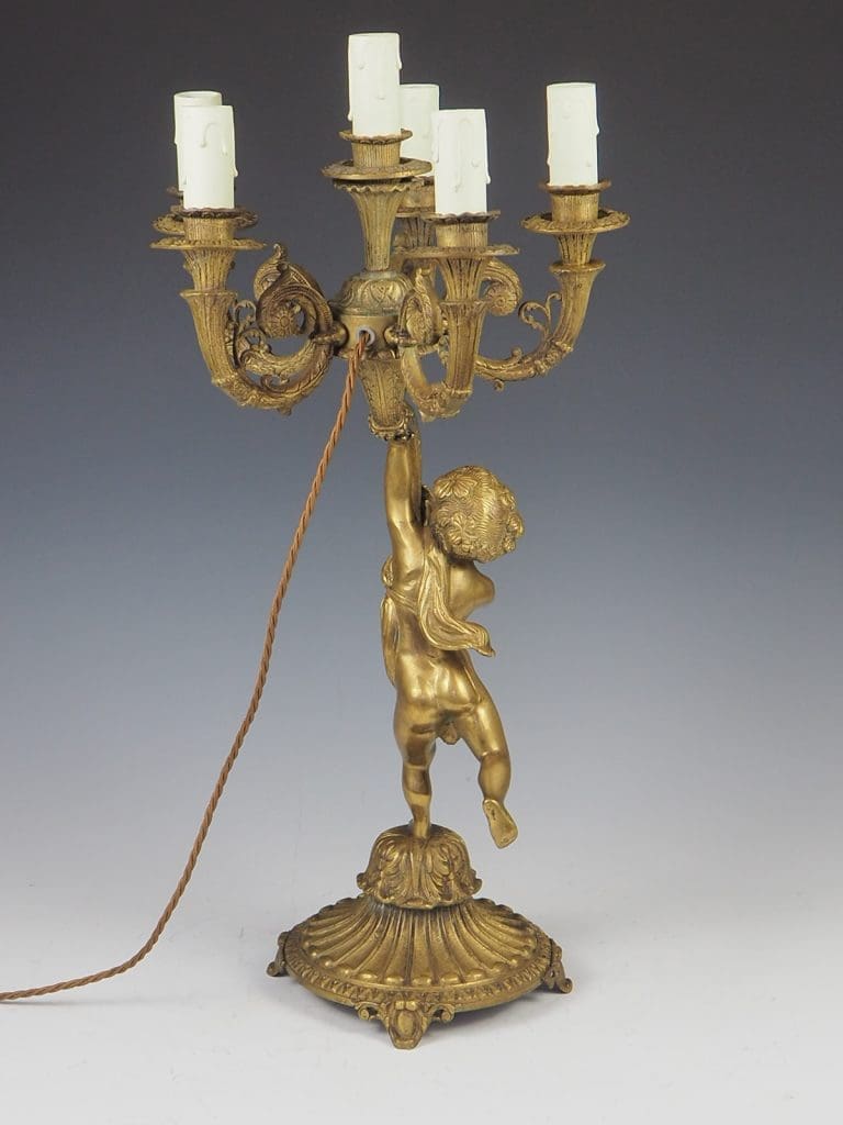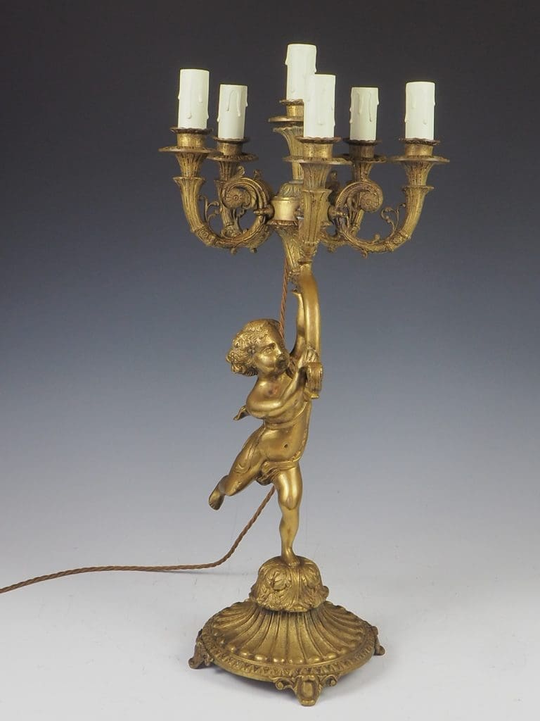 Antique Brass Cherub 6 Light Candelabra Lamp