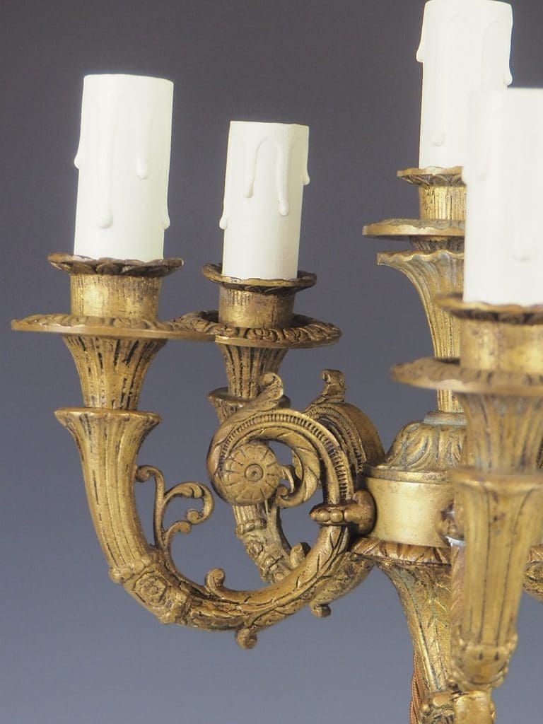 A gorgeous antique candelabra table lamp. This was owned originally by Stobo Castle, Scotland before new owners took it over and made the venue into a luxury spa