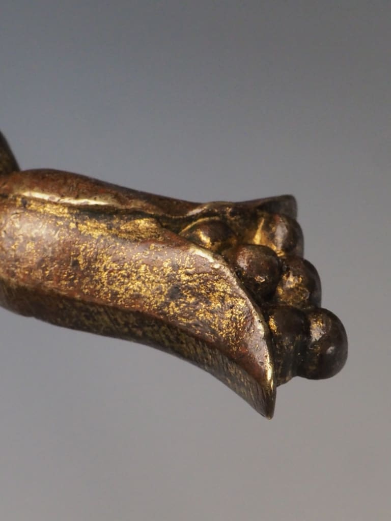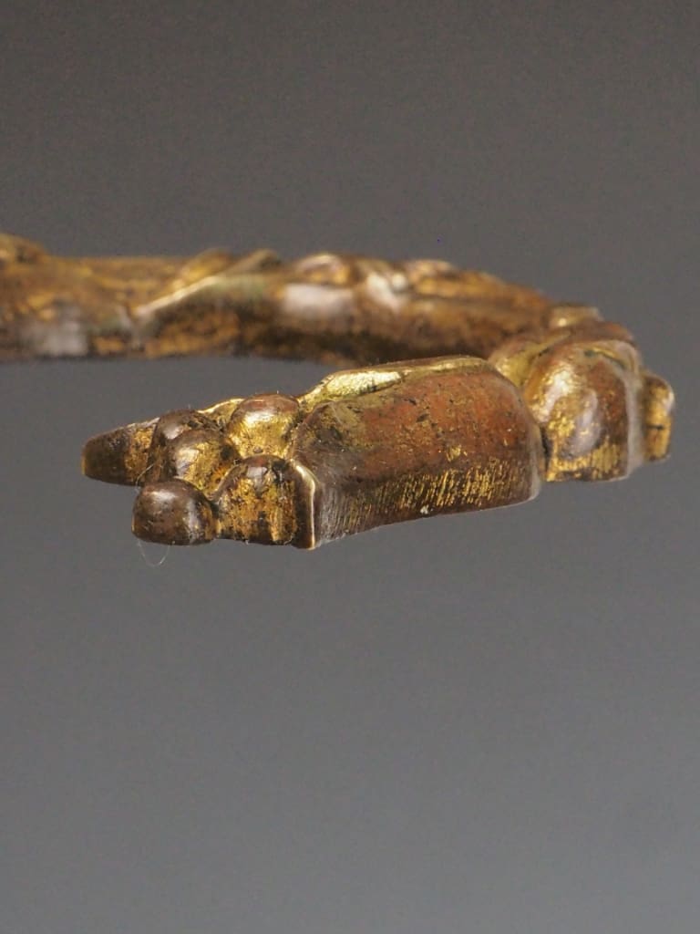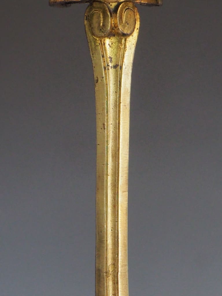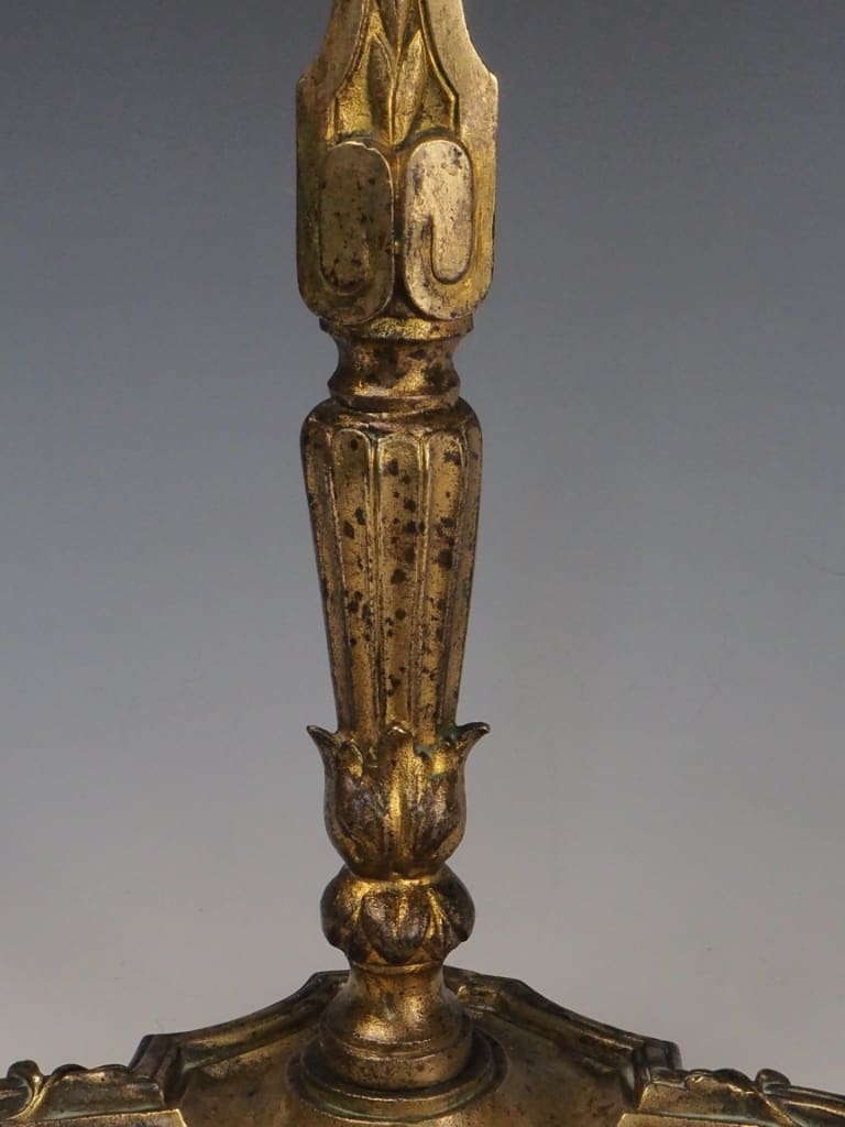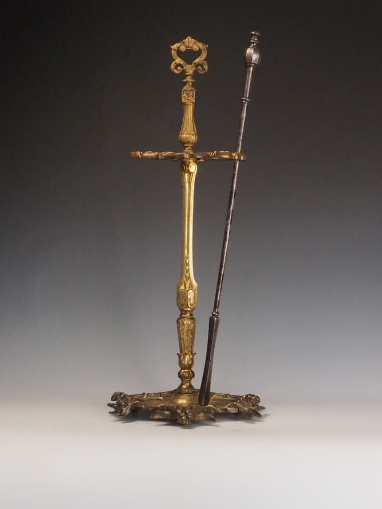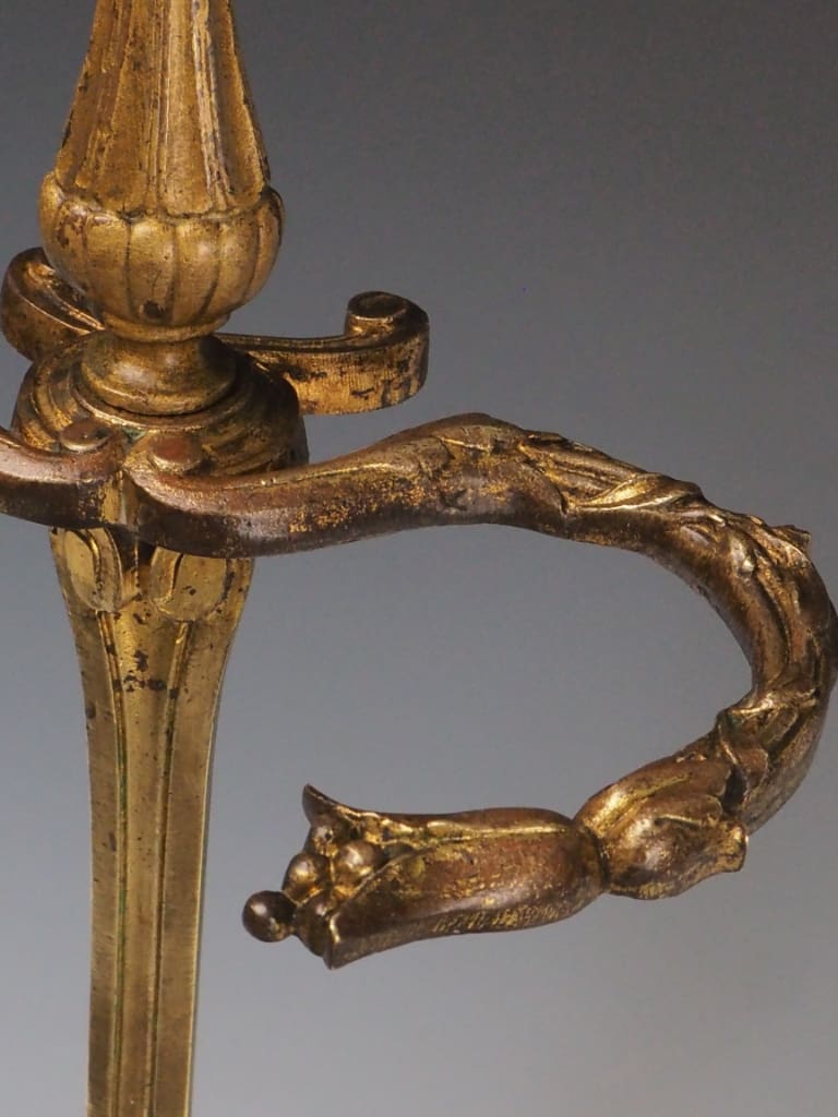 The brass has developed a rich, warm patina over time, enhancing the piece’s historical charm and character. While originally intended to support fireplace tools, this stand remains a striking and functional accent—perfect as a statement piece by the hearth or as a standalone example of period craftsmanship.