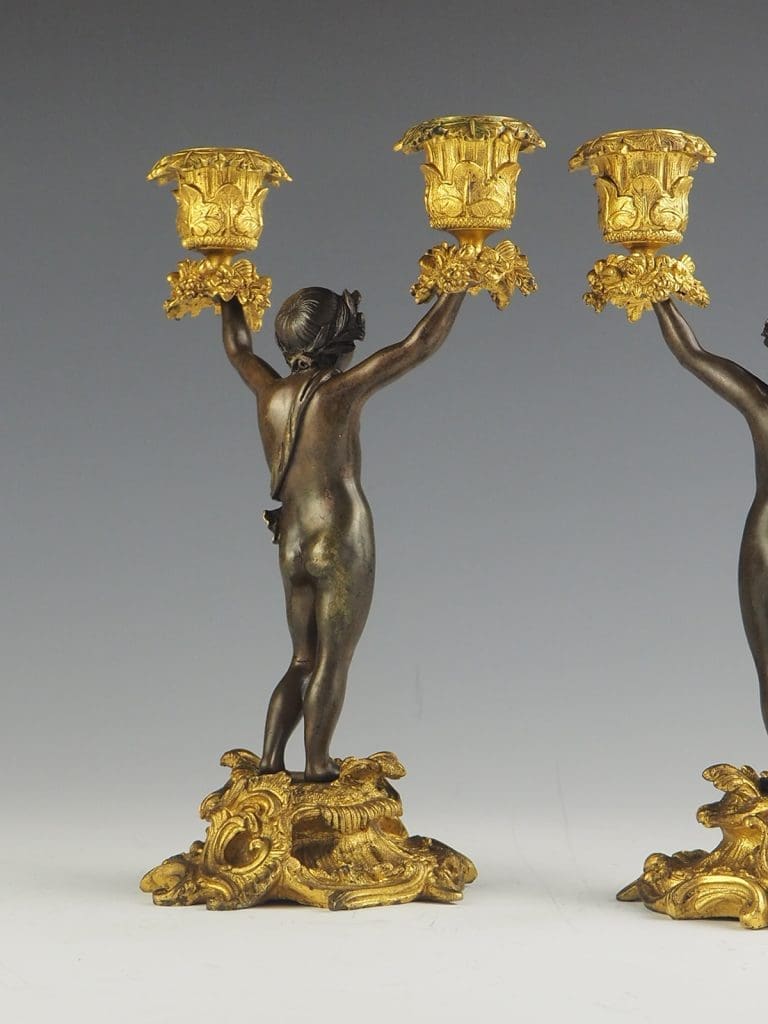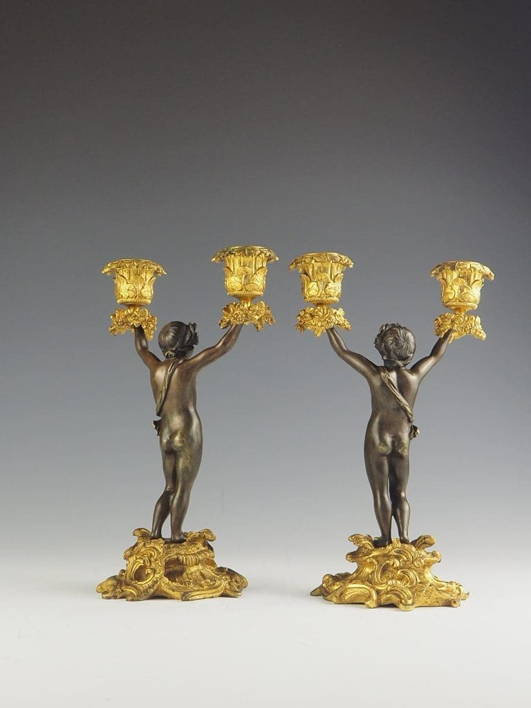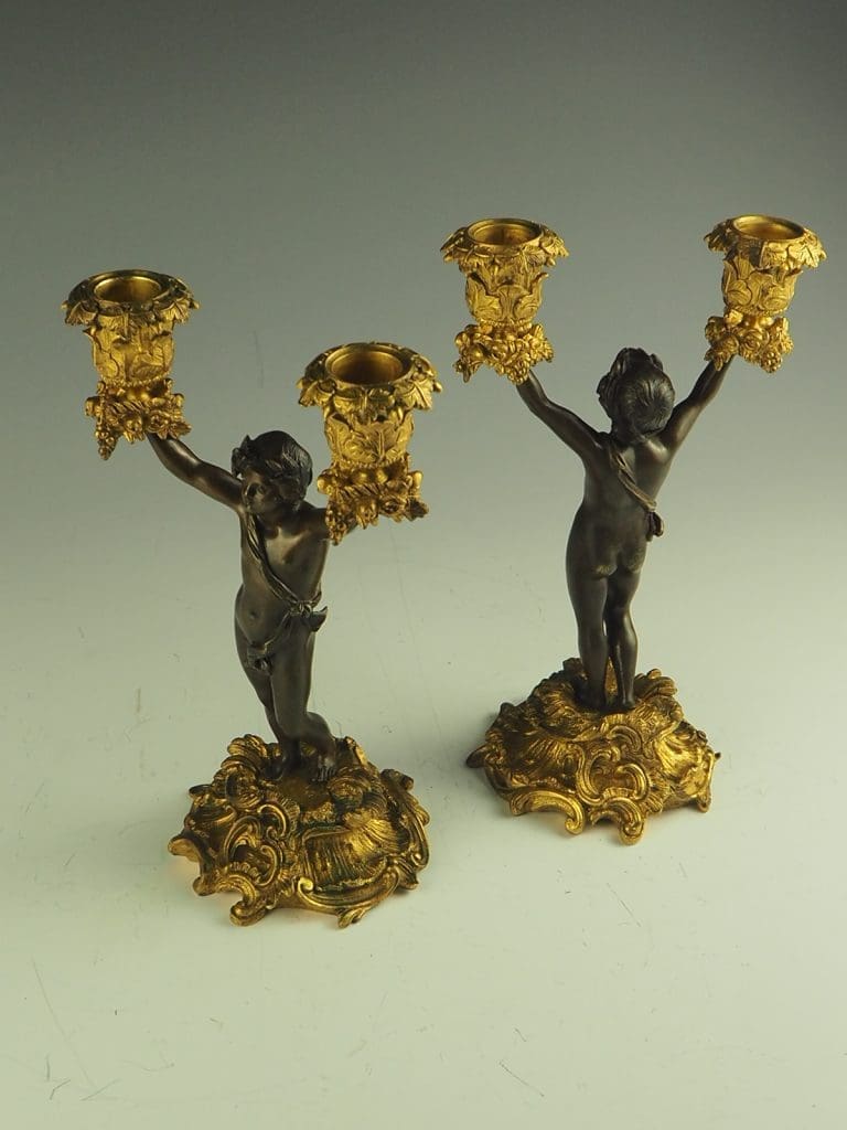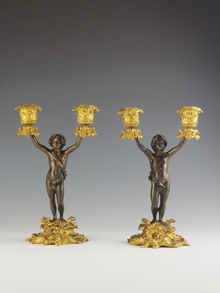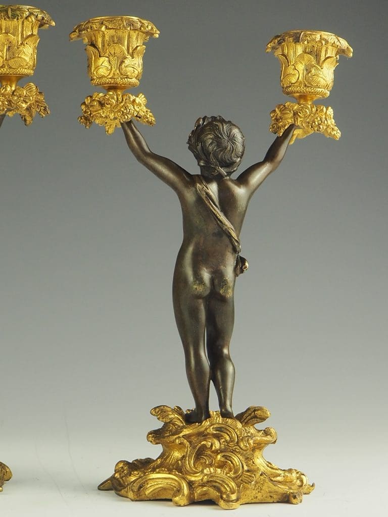 Antique Bronze and Ormolu Twin-Light Cherub Candelabra