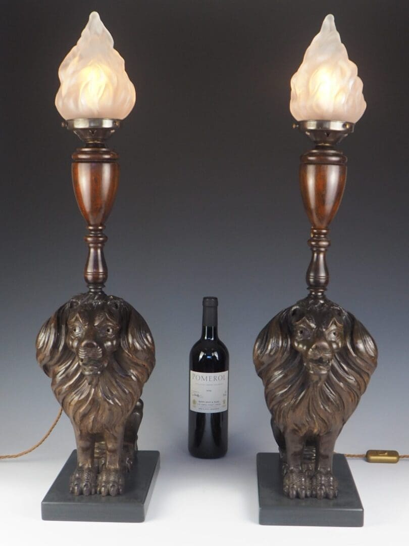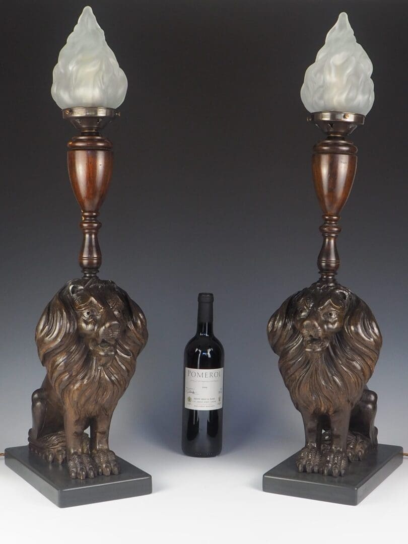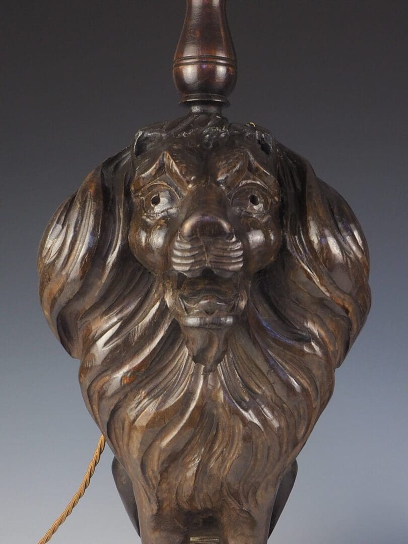 Antique Carved Oak Lion Table Lamps