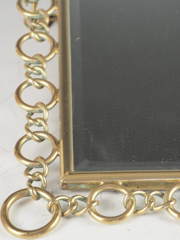 Description Antique Chain Link Bevelled Wall Mirror, a stunning addition to any home decor. Crafted with meticulous attention to detail, this mirror exudes elegance and sophistication. The frame is made of high-quality brass, which not only adds a touch of vintage charm but also ensures durability and longevity.