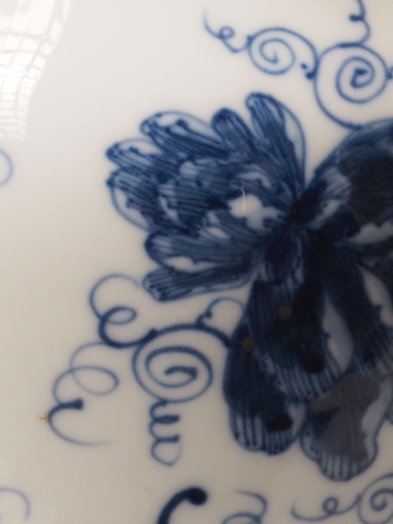 Excellent structural integrity; no visible cracks, chips, or restoration. The hand-painted blue and white floral decoration remains vibrant and clear.