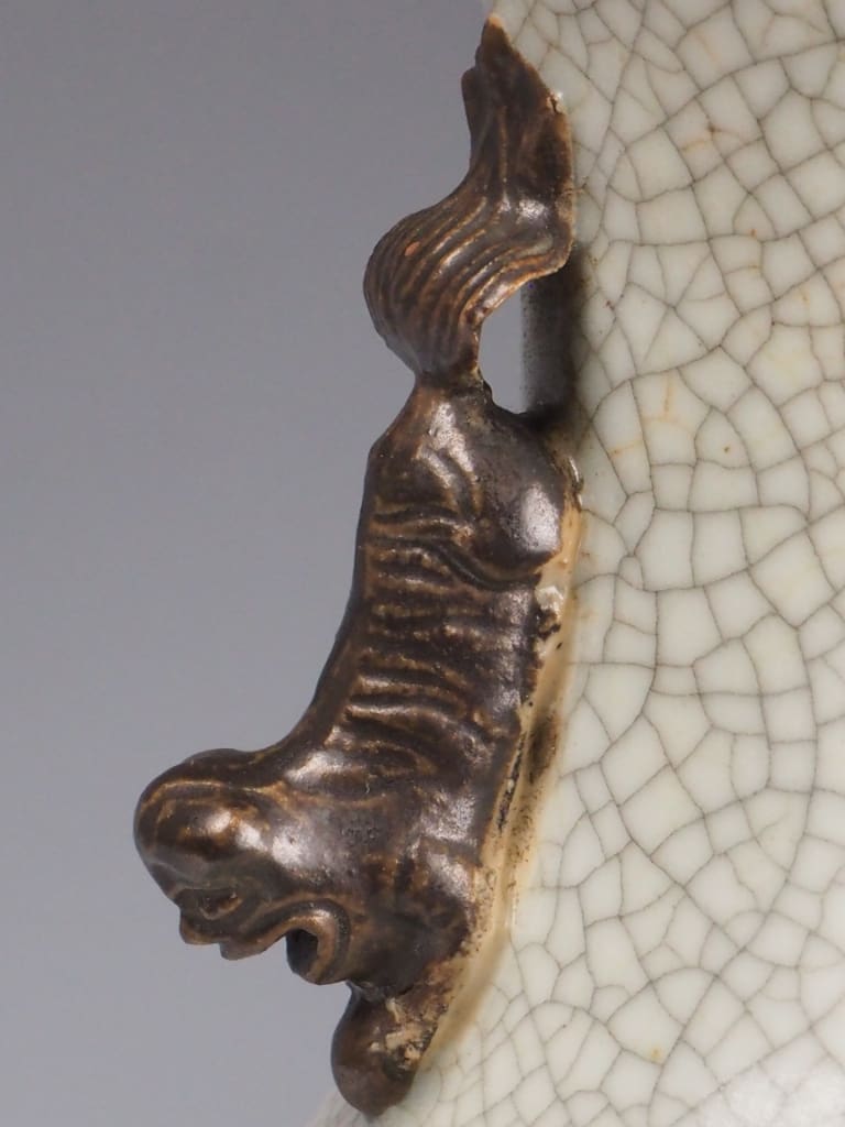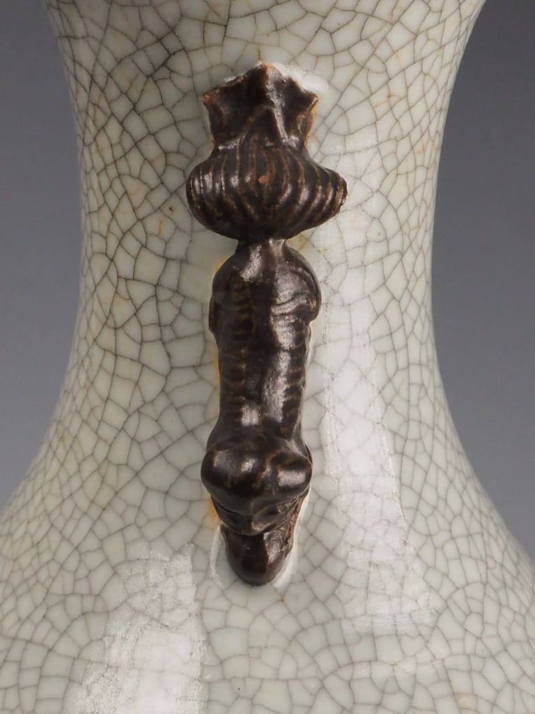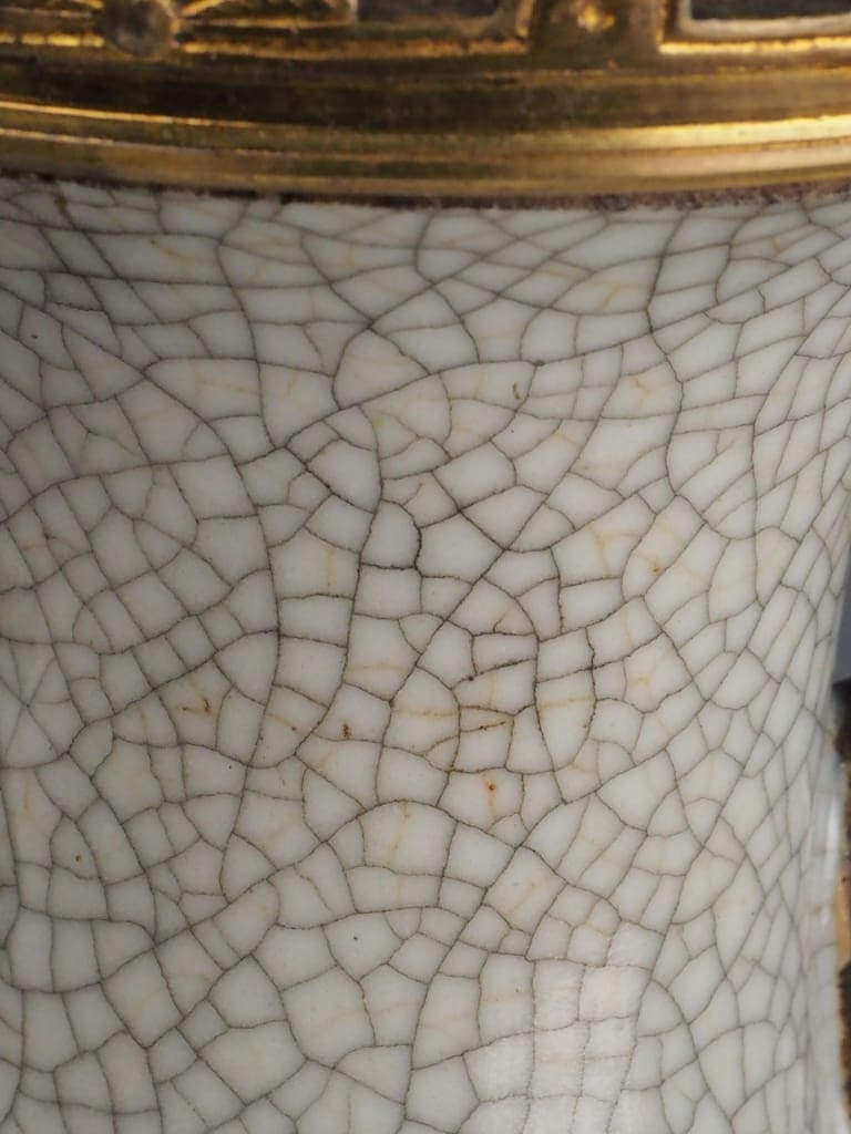 Crackle glaze (Ge ware) has been a feature of Chinese ceramics since the Song Dynasty (960–1279 AD), appreciated for its organic patterns that emerged during the cooling process of high-fired glazes. In the 18th and 19th centuries, crackle glaze ceramics were widely produced for both domestic and export markets, often used for decorative vessels, vases, and lamps.