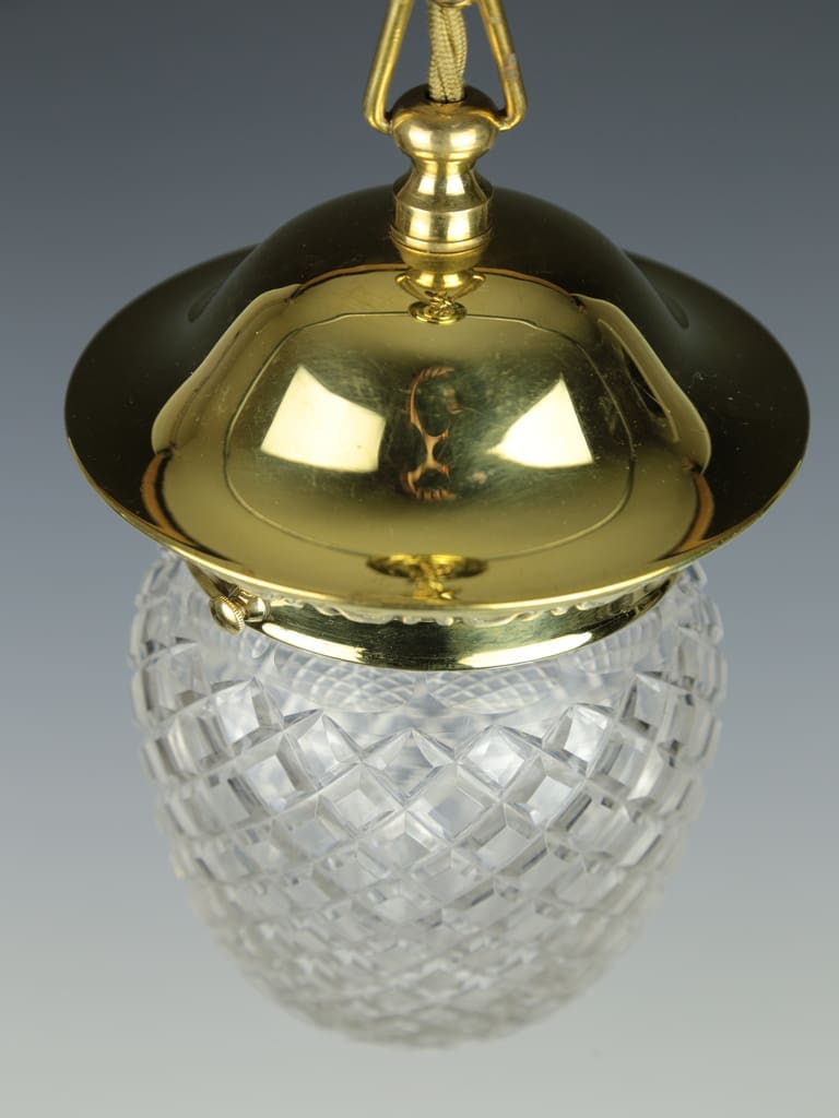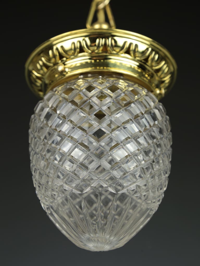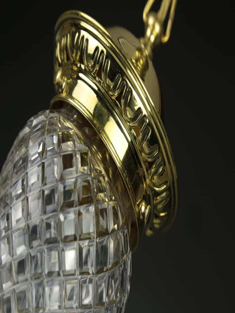 This exquisite pendant light features an original gallery with delicate detailing along the rim. Its stunning cut glass design reflects light beautifully, adding a mesmerising play of patterns and shadows. The timeless charm of this piece makes it perfect for both traditional and contemporary settings, ideal for dining areas, entryways, or living rooms. It seamlessly combines functionality with elegance, enhancing any space with its presence.