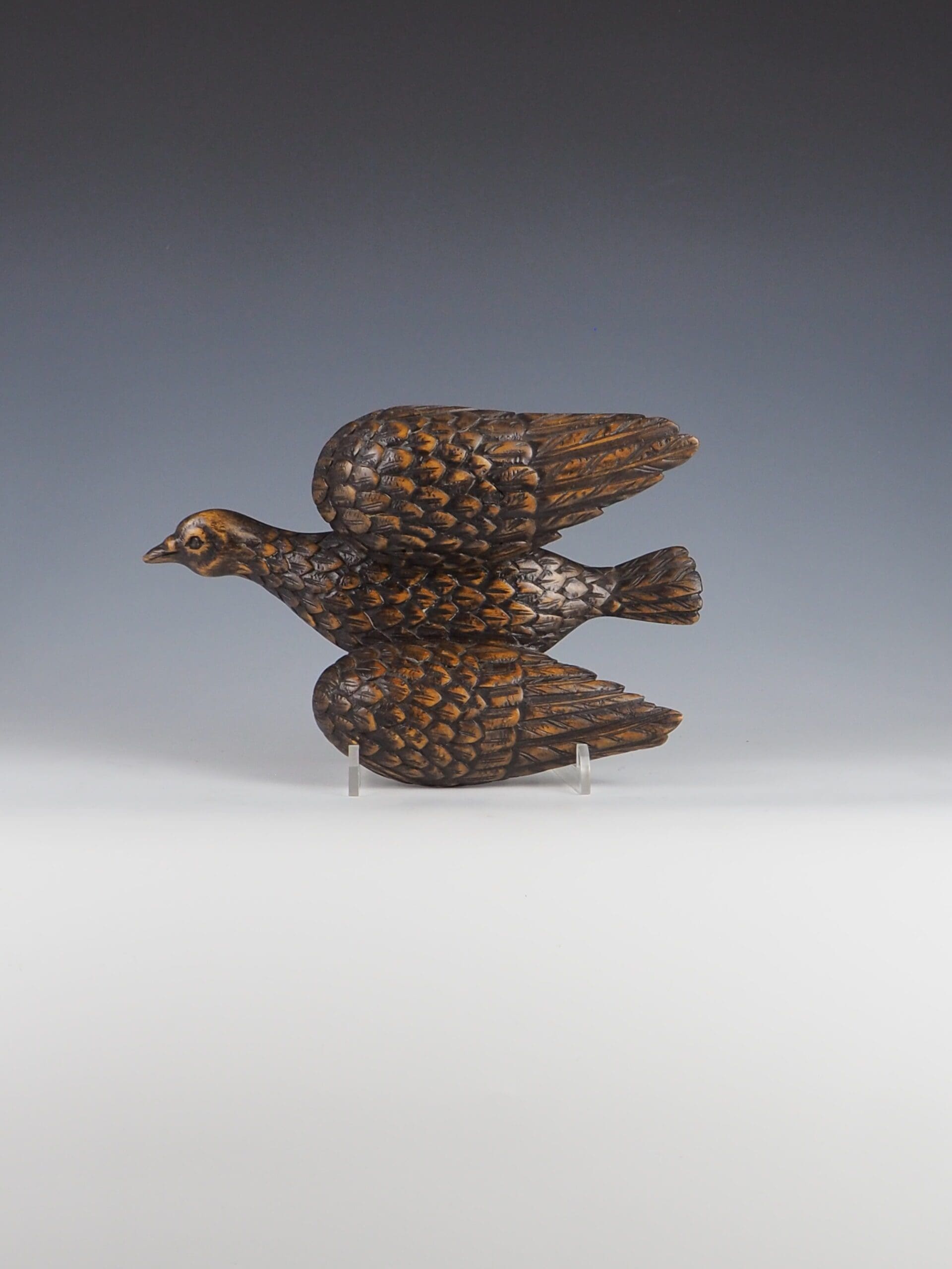 Exquisite antique decorative carved bird is a stunning piece that showcases intricate craftsmanship and attention to detail. The bird's design features delicate carvings that highlight its natural form, making it a captivating addition to any home decor. Whether hung on a wall as a striking focal point or placed on a sideboard as an elegant decorative object, this piece effortlessly enhances the aesthetic of any room.