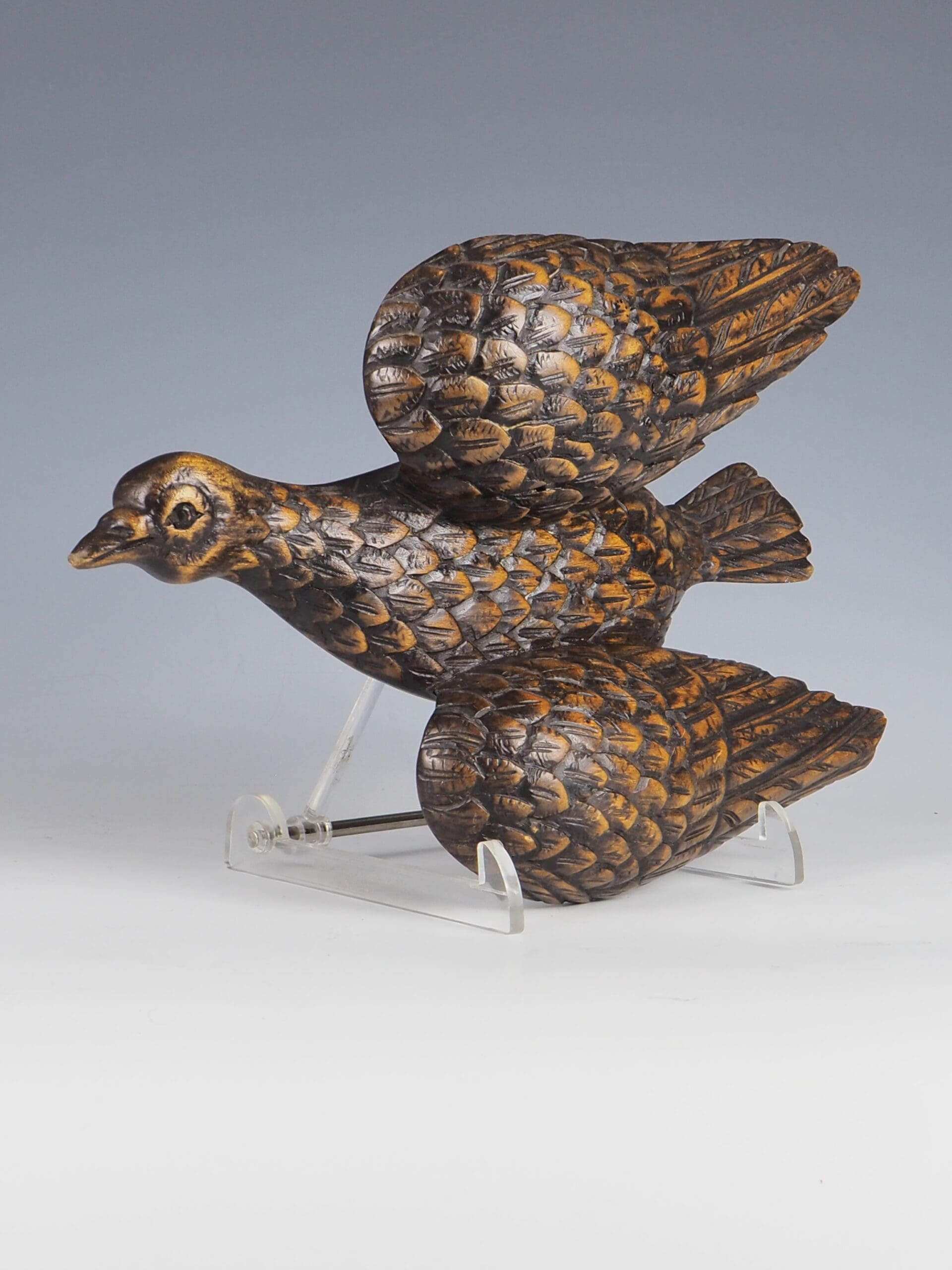 The bird's design features delicate carvings that highlight its natural form, making it a captivating addition to any home décor.