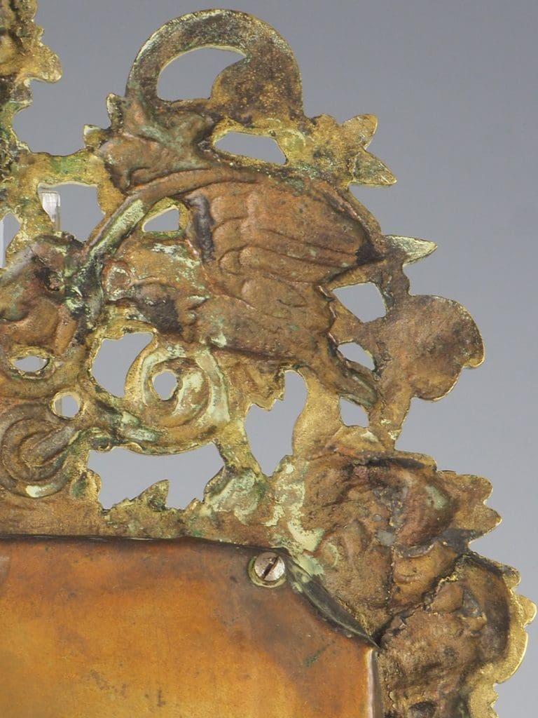Antique English Victorian Brass Mirror is a true testament to the exquisite craftsmanship of the era.