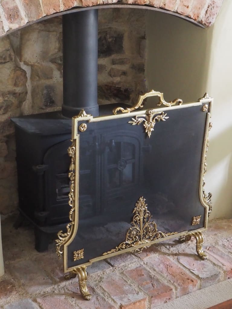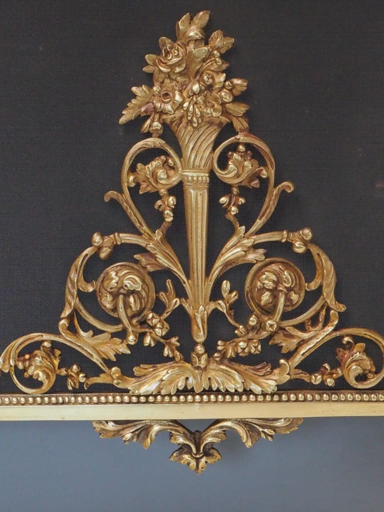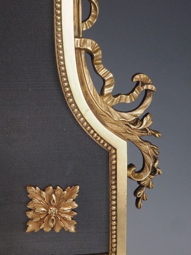 Antique French Louis XVI Style Bronze Doré Fire Screen, c.1880