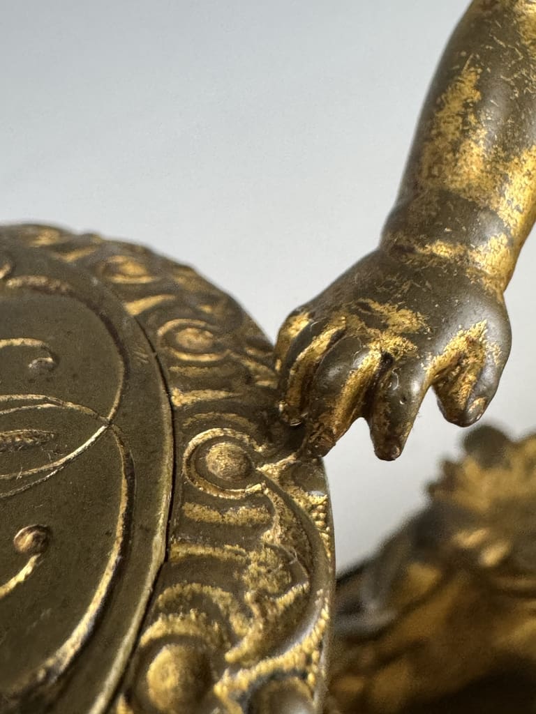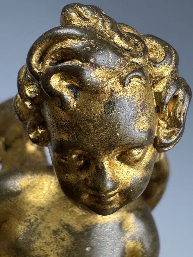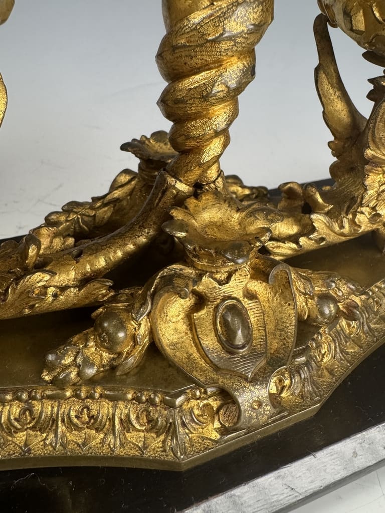 Overall in very good antique condition, with expected wear consistent with age and use. The gilt bronze mounts retain a rich, warm patina, with minor surface rubbing and small areas of oxidation, particularly in recessed details—commonly found in period pieces.