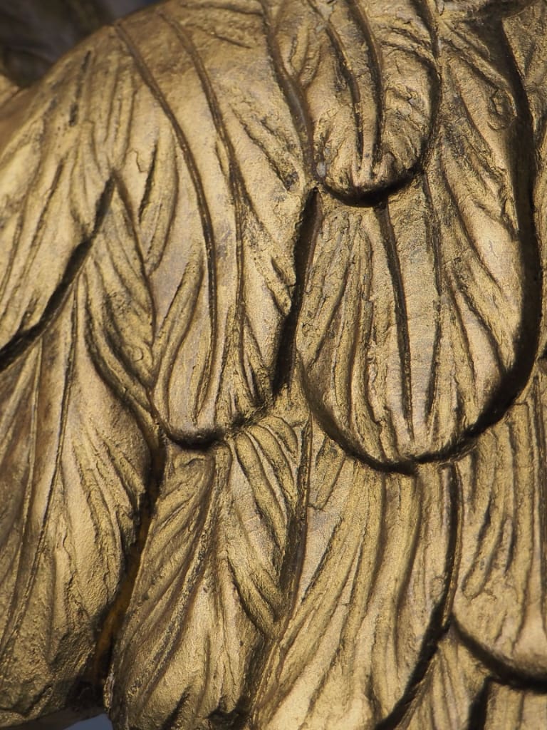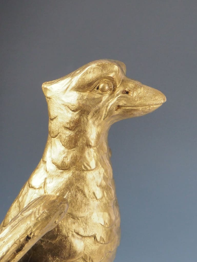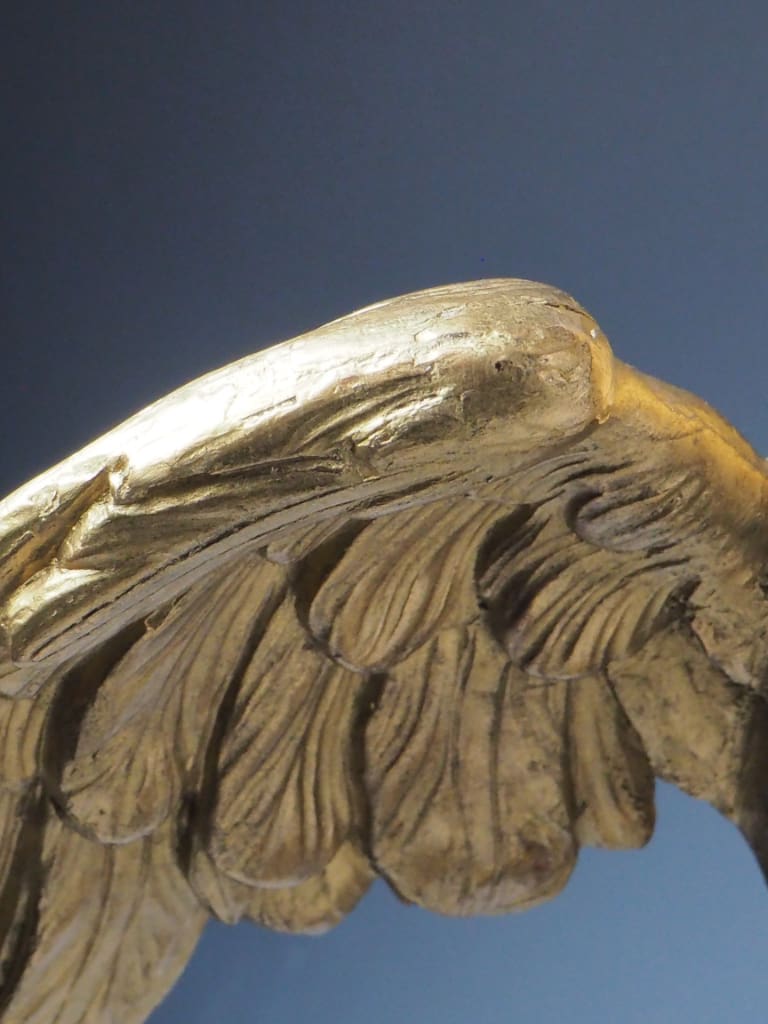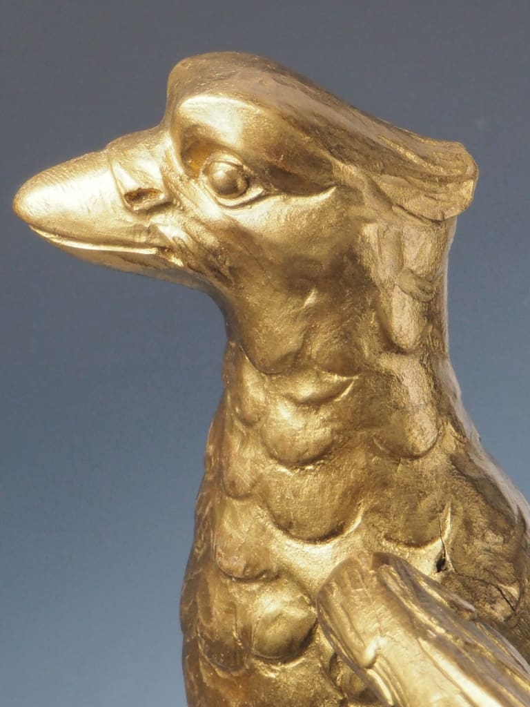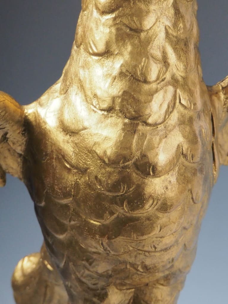 Notable Detail: One feather tip on the eagle's right wing appears to be missing, likely lost over time. This minor loss does not detract from the overall visual impact or structural integrity of the piece but is noted here for accuracy.