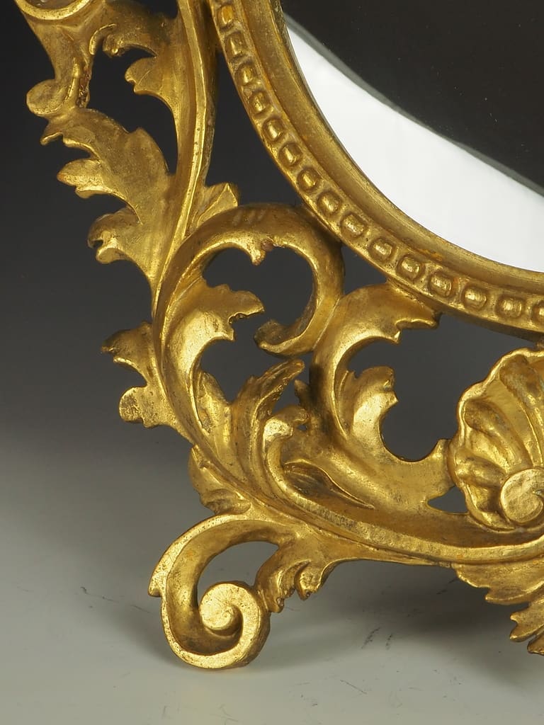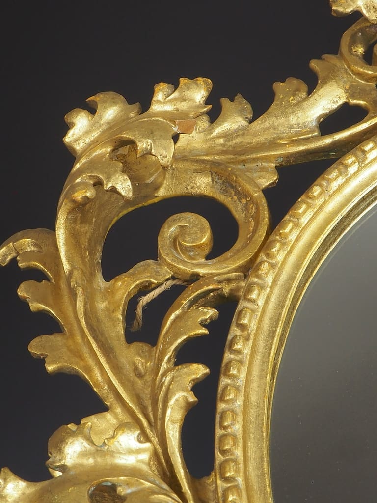 The Baroque period, spanning the 17th and early 18th centuries, is renowned for its exuberant and highly detailed artistic style. Baroque art and architecture were characterised by dramatic expressions, intricate detailing, and grandeur. This mirror, with its elaborate carvings and gilded finish, epitomises the lavishness of the Baroque era.