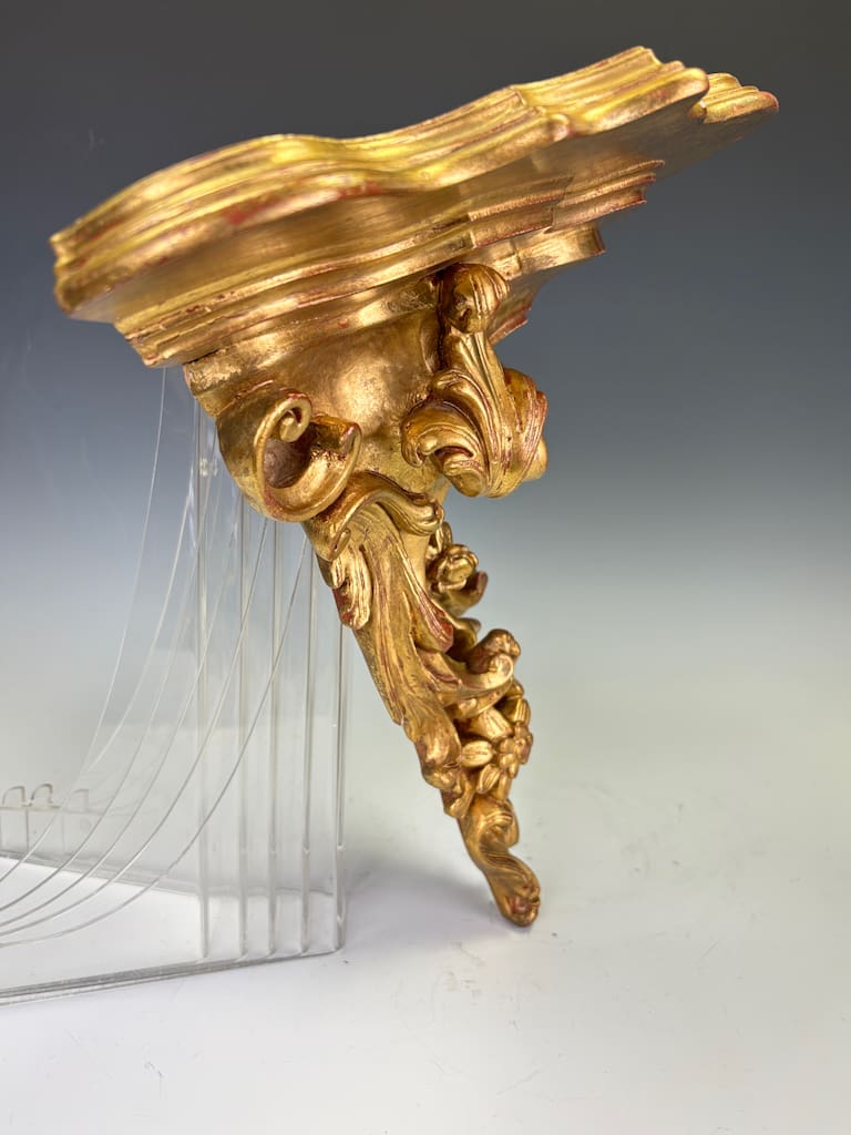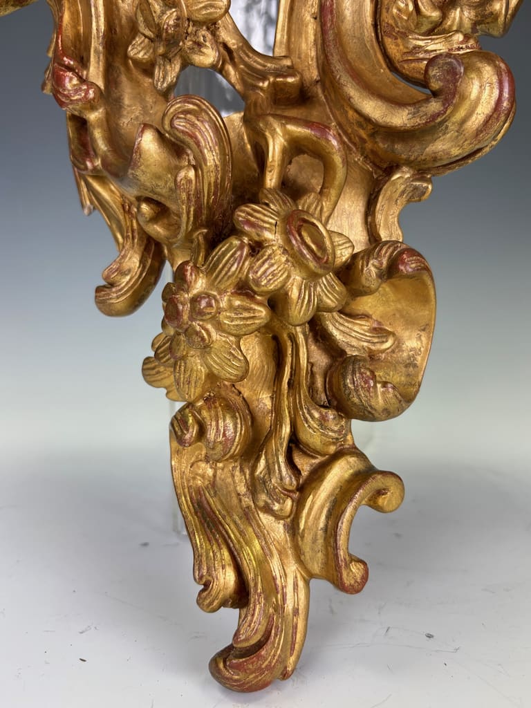 The Rococo Revival, particularly popular in Italy and France from early 20th, embraced the playful curves, asymmetry, and naturalistic ornamentation of the original 18th-century style. This bracket demonstrates the period’s craftsmanship at its best: lively, exuberant, and highly decorative, designed to bring elegance and movement to an interior wall.
