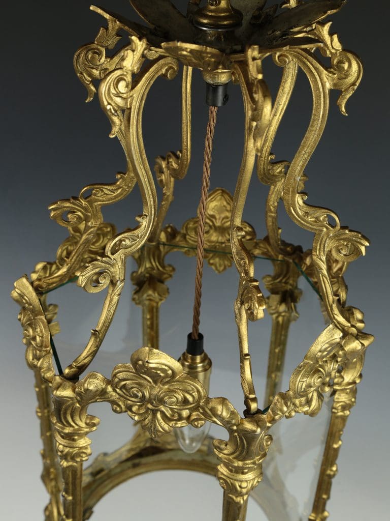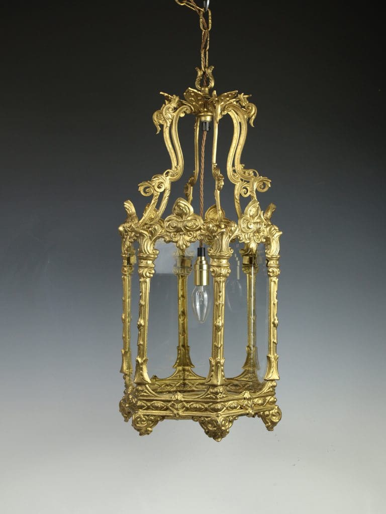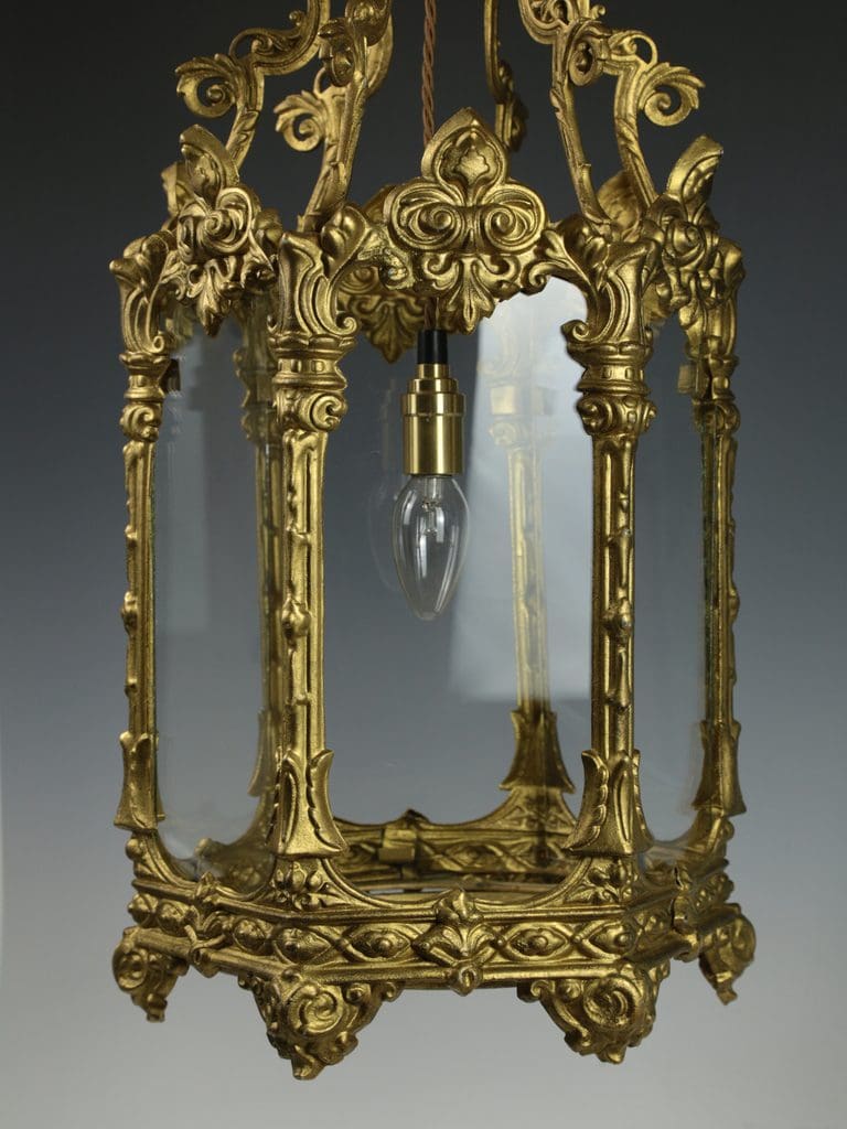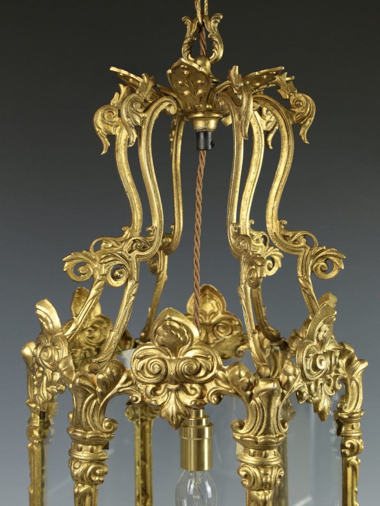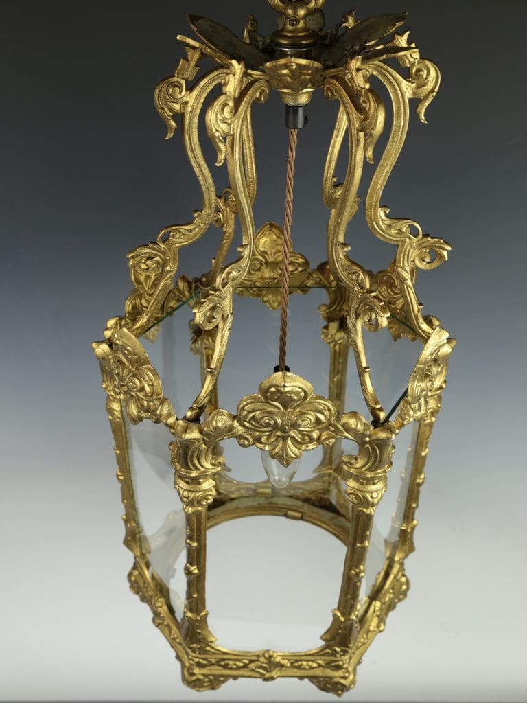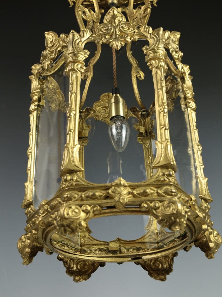 Antique Large Elegant Gilt Hallway Lantern
