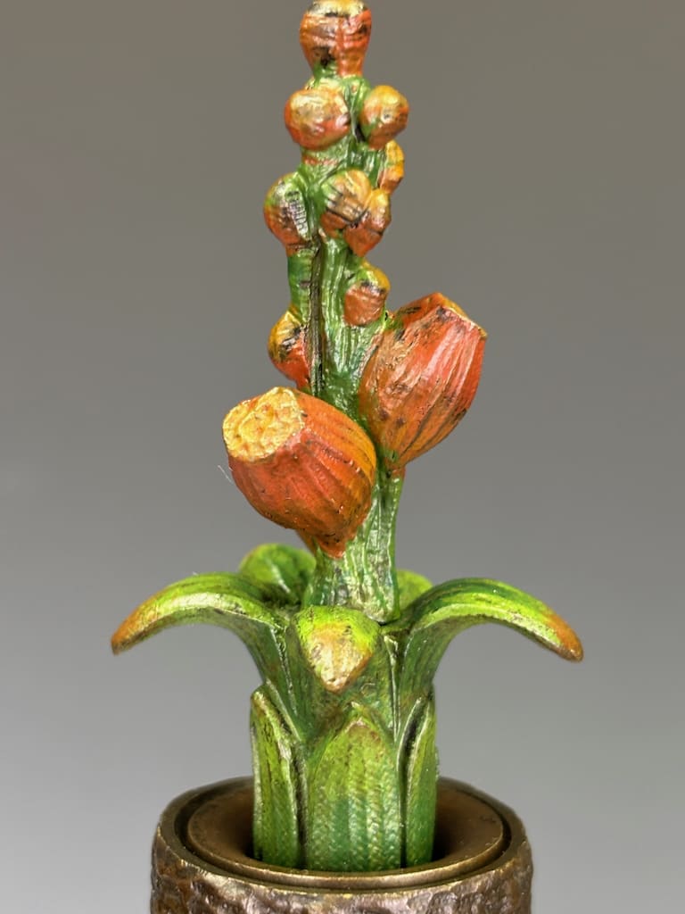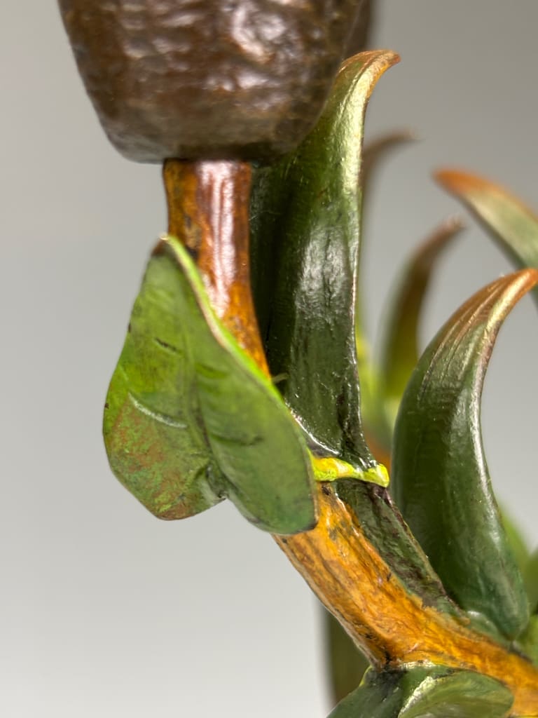 The botanical modeling of leaves, stems, and buds remains sharp and crisp, with no losses or repairs detected.