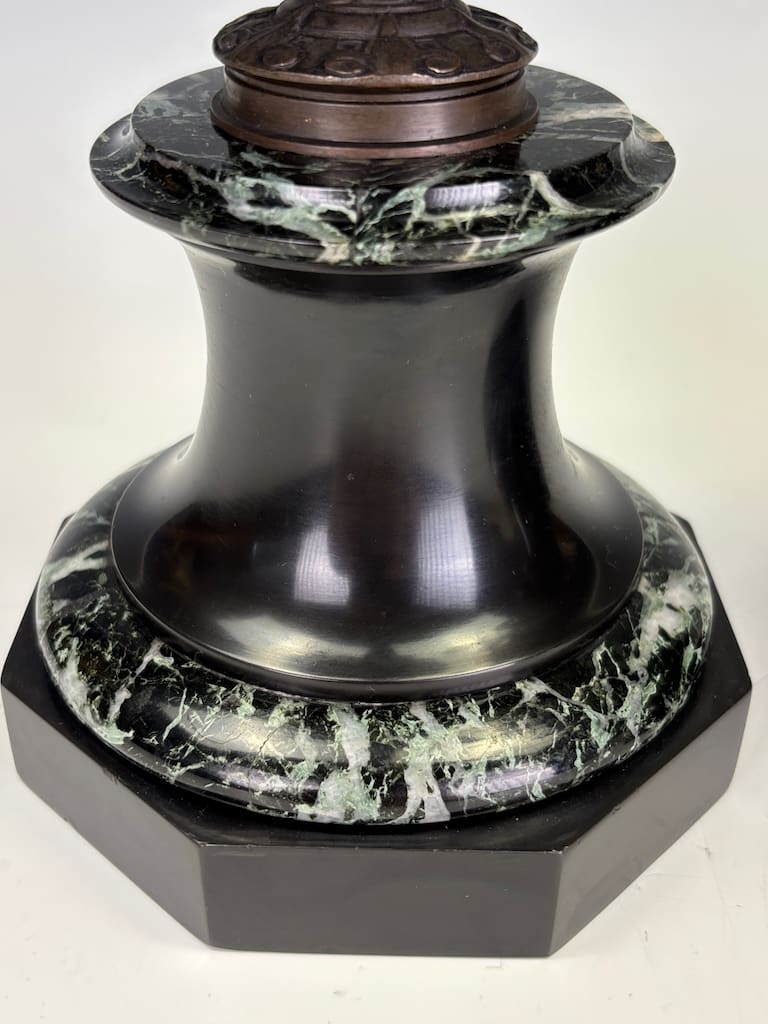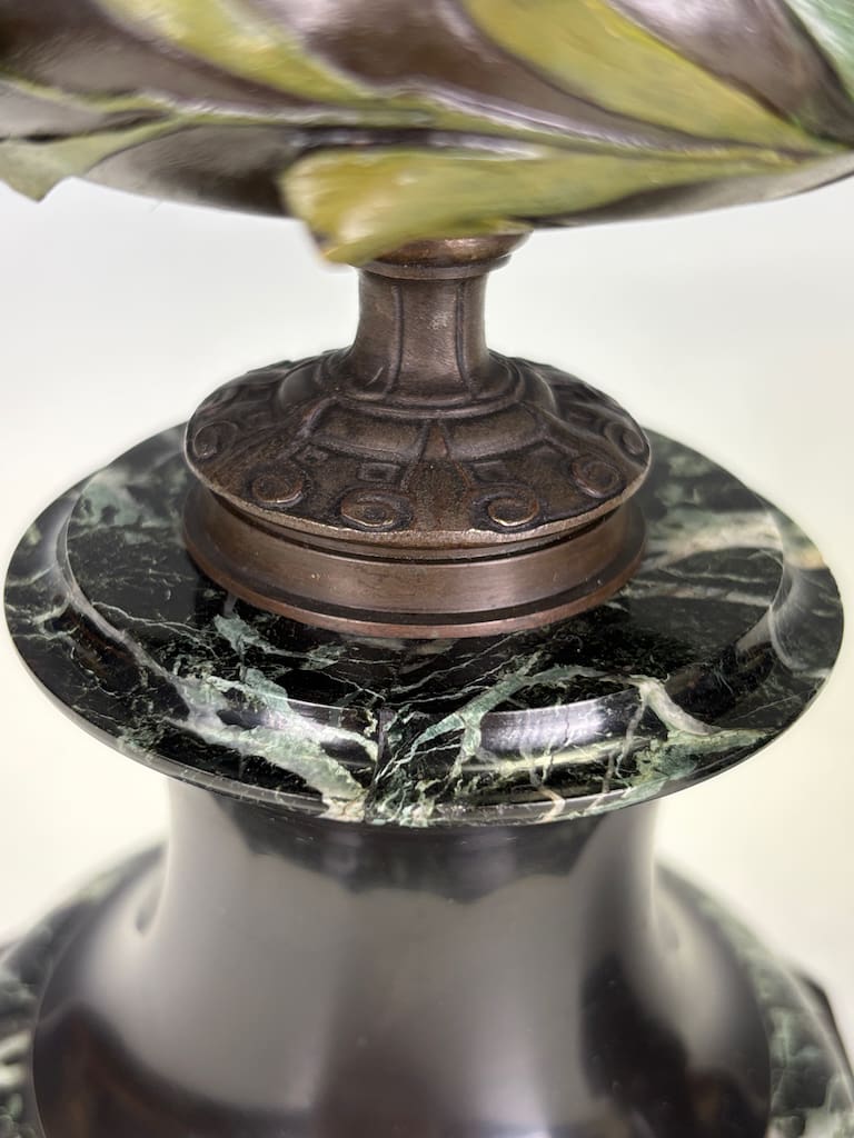The bases, of black marble with gentle veining, provide a measured architectural balance, enhancing the naturalistic exuberance above. The marriage of botanical delicacy and classical gravitas speaks directly to Pradier’s artistic genius—his ability to blend sculptural poetry with functional form.