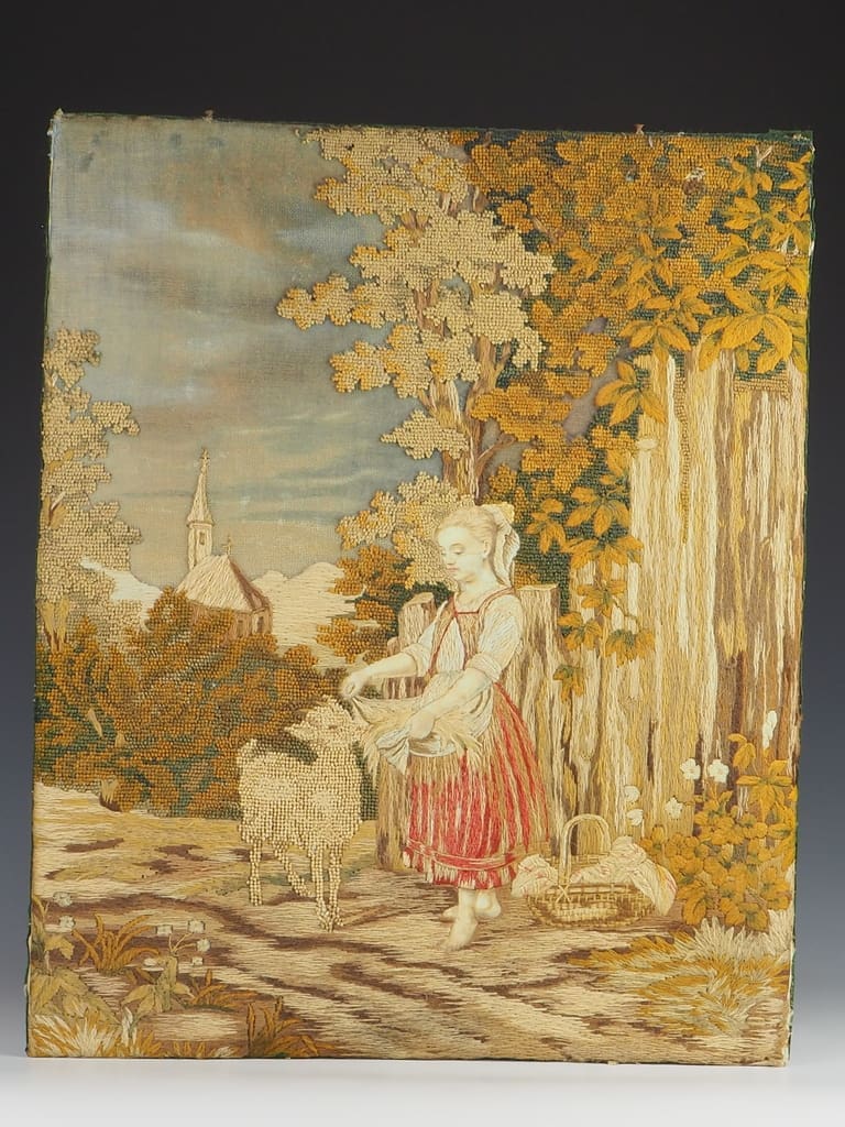 Charming 'Royal College of Needle Art' Wool and Silk Tapestry