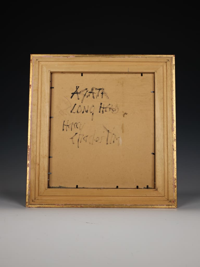 A highly compelling and richly dramatic example of Harry Charles Tim’s signature aesthetic, "Agata" belongs to the artist’s celebrated and sought-after ‘Longhead’ series. This work captures the full power of Tim’s evolving visual language, establishing a strong psychological presence through bold formal invention.