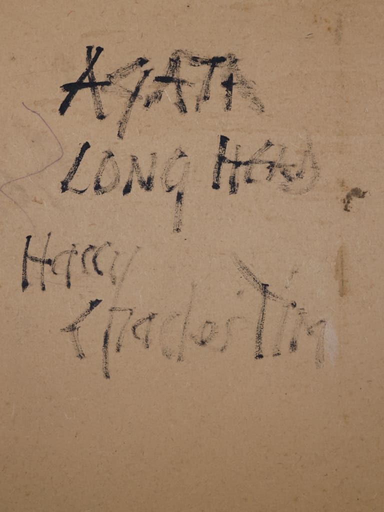 The figure is defined by her striking, exaggeratedly elongated neck—the defining motif of the ‘Longhead’ series. This compositional device serves as a deliberate nod to early 20th-century masters like Amedeo Modigliani, while simultaneously embodying Tim's uniquely contemporary expressive vision.