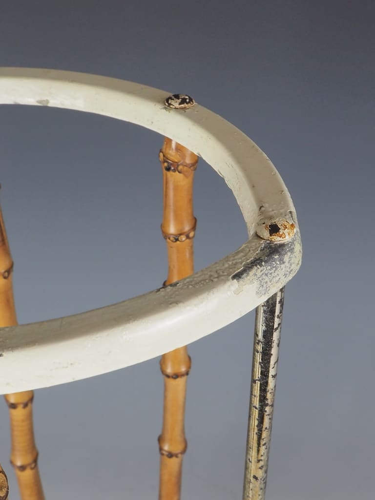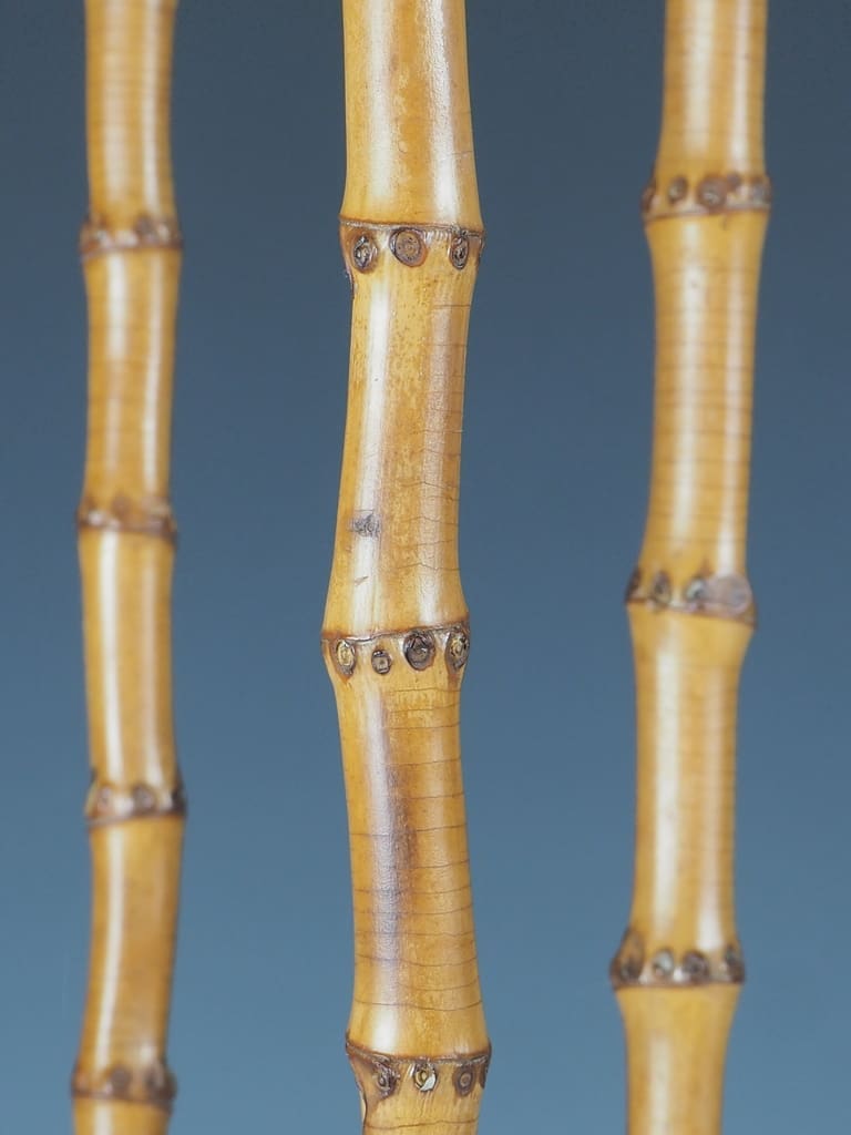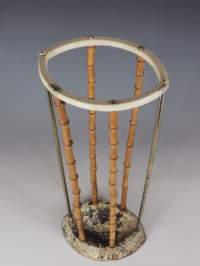 Epitomises the elegance and artistic sensibilities of the Aesthetic period. The stand features a striking combination of natural bamboo and robust cast iron, showcasing a harmonious blend of materials that reflects the era's appreciation for both craftsmanship and design.
