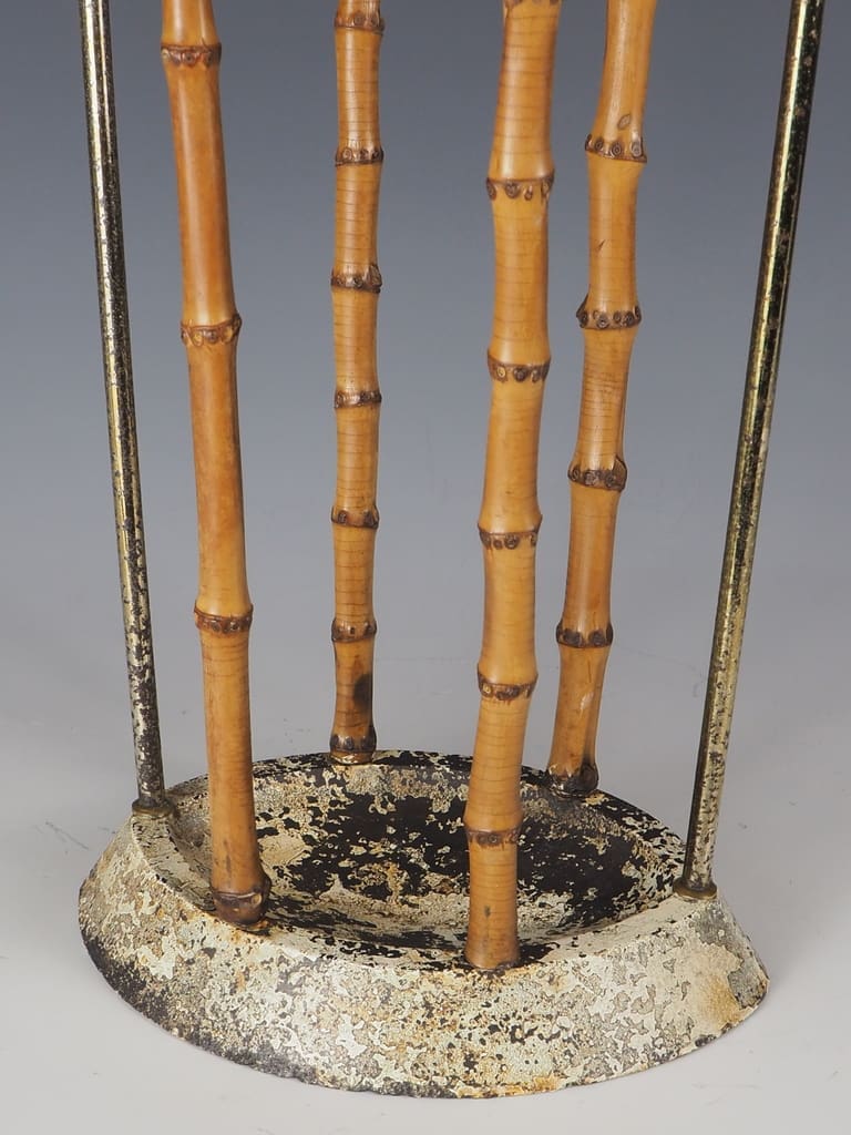 Antique British Artis Bamboo & Cast Iron Umbrella Stickstand, crafted in the late 19th century by the renowned Artis of Birmingham