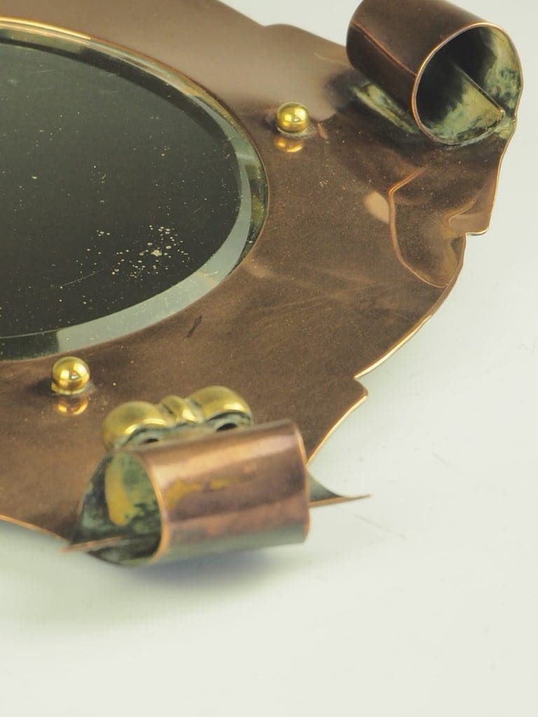 Arts & Crafts Copper and Brass Wall Bevelled Mirror