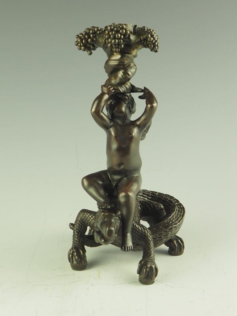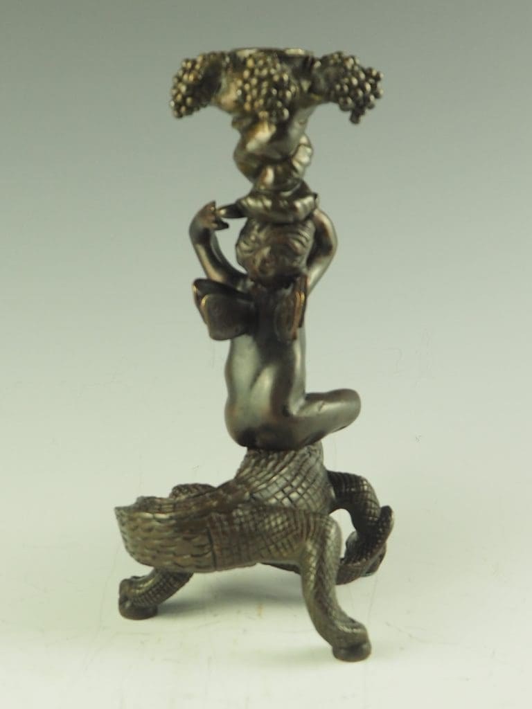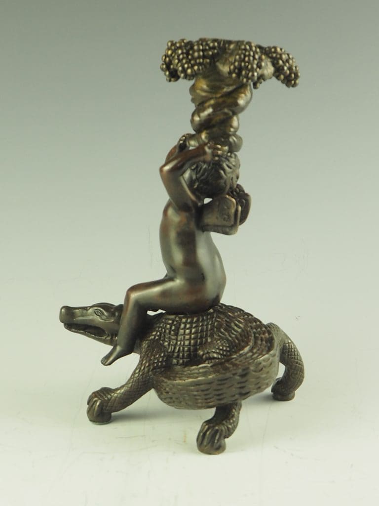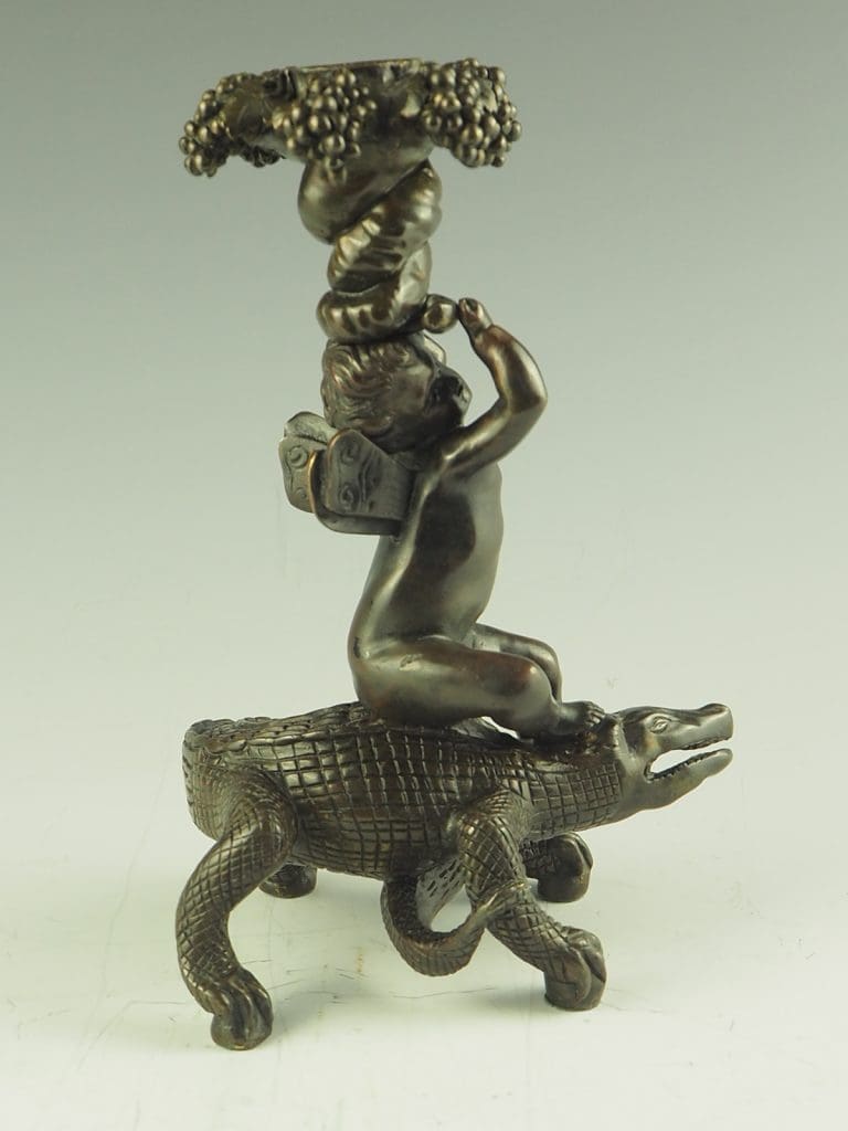 Bronze Putto Riding Crocodile Candlestick