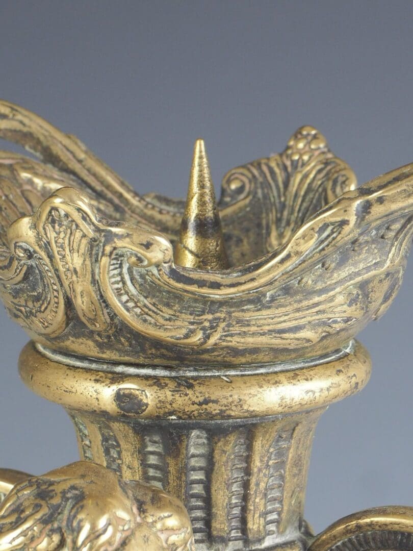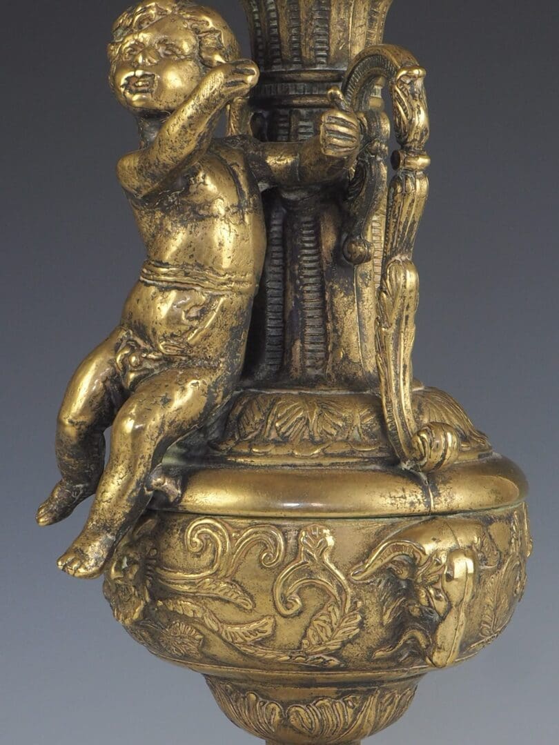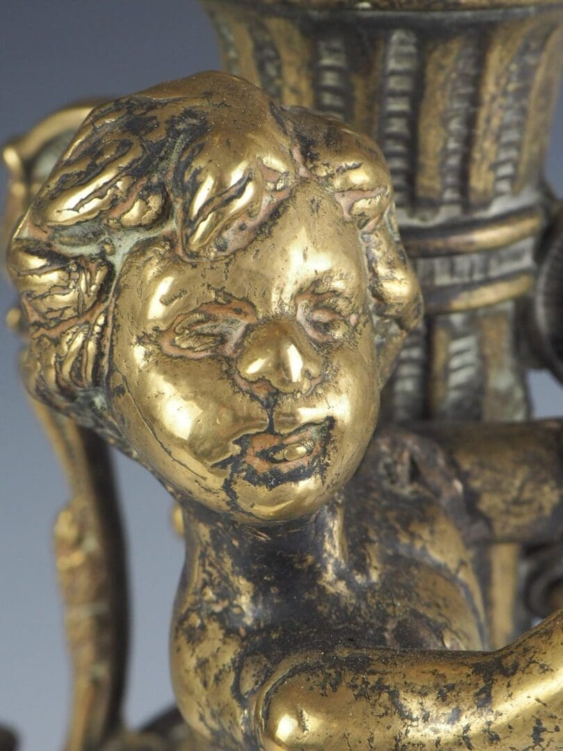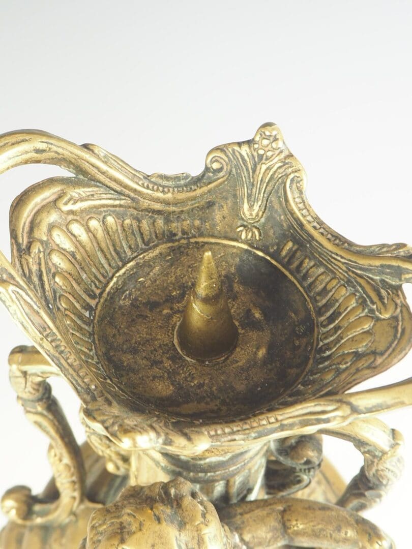 French Rococo Antique Cherub / Putti Brass Candle Holder Candelabra