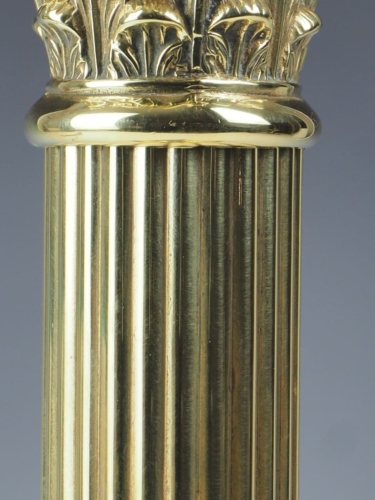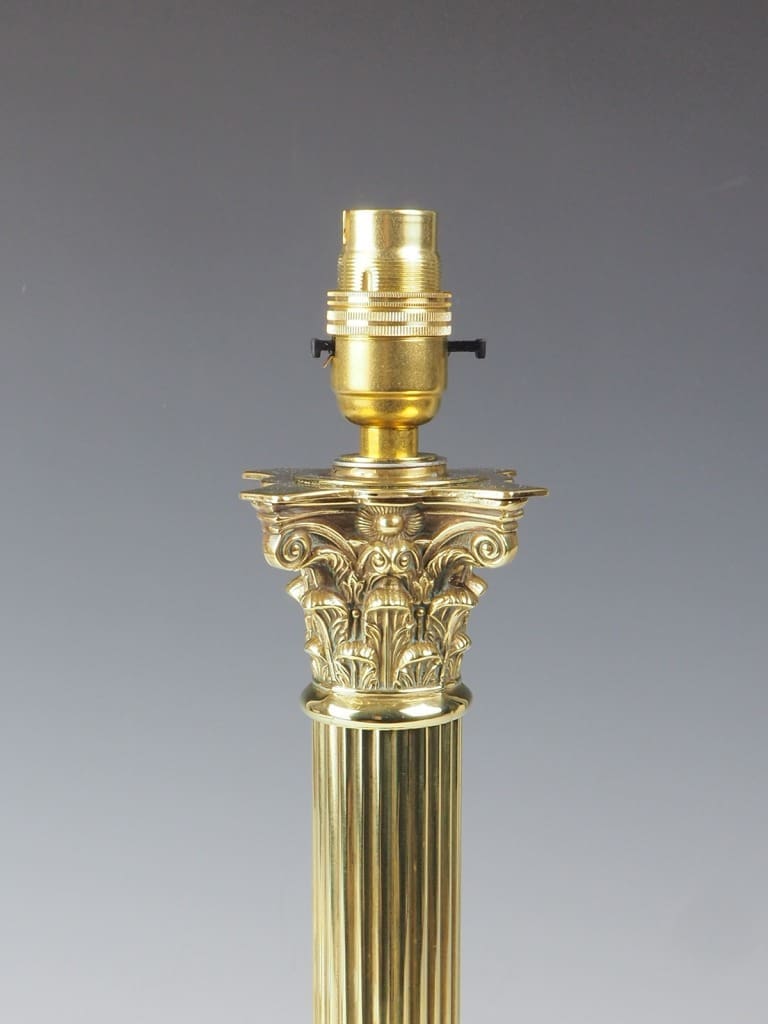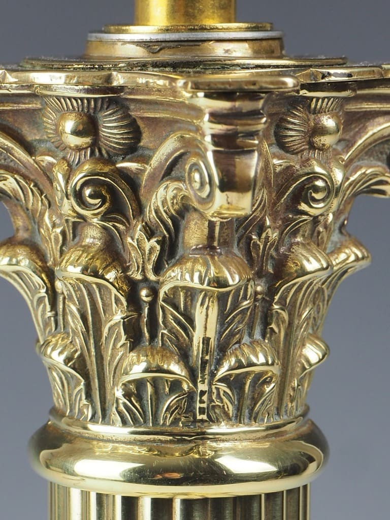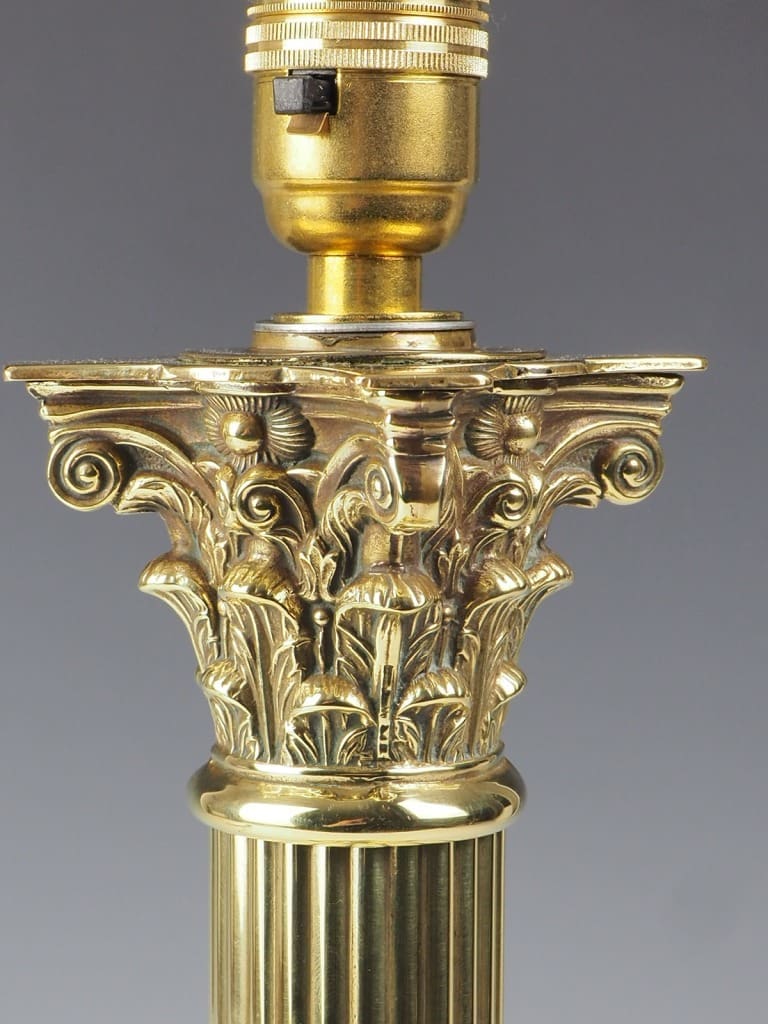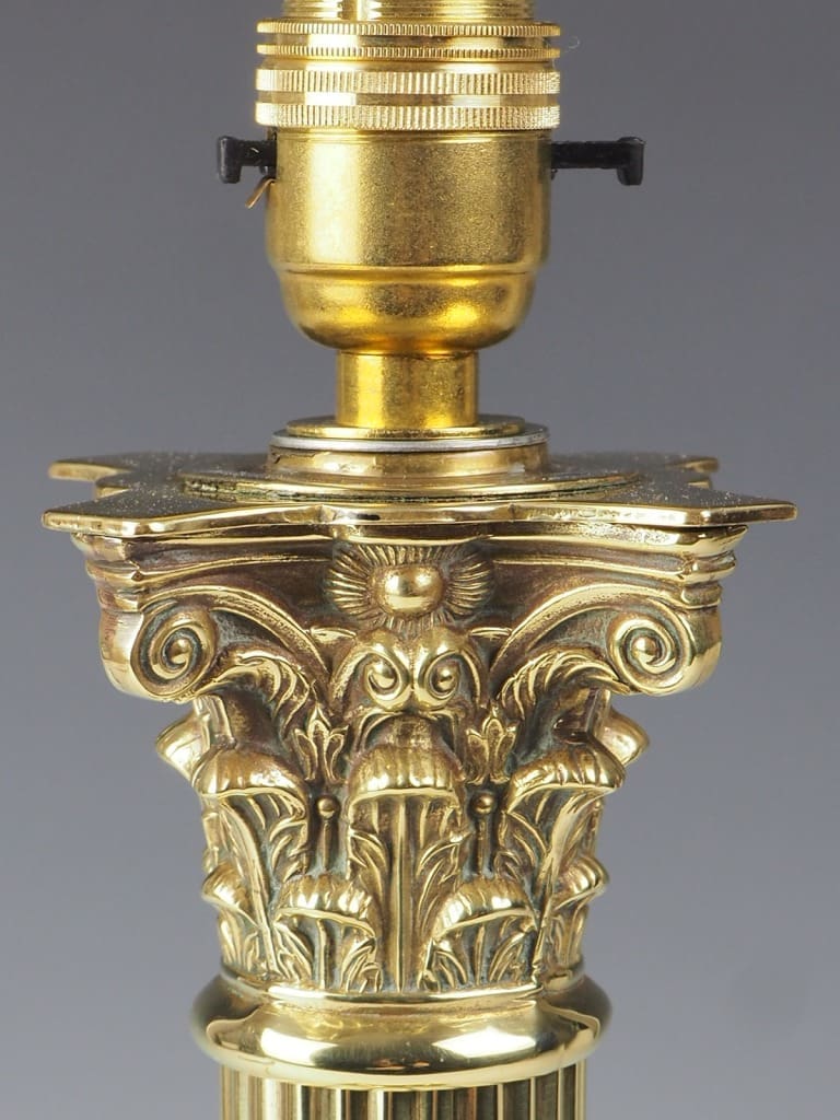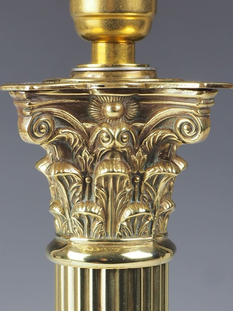 Add a touch of sophistication to your space with this exquisite brass table lamp, featuring the classic Corinthian design.