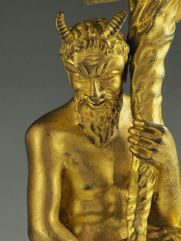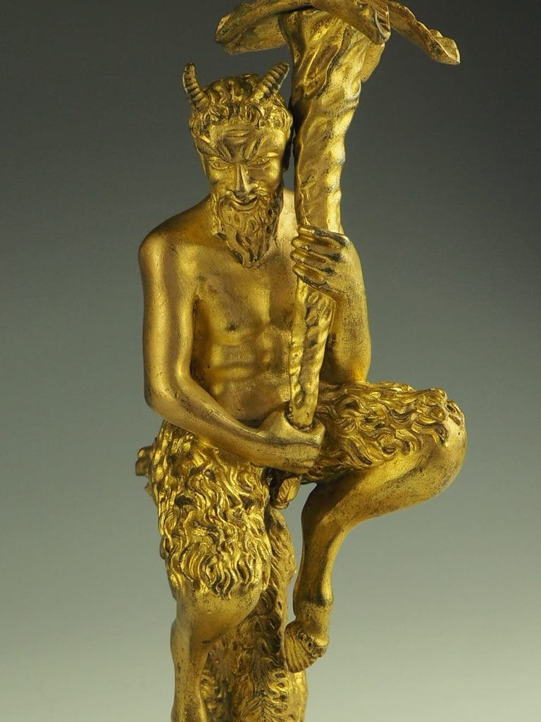 19th Century Gilt Bronze Satyr Candlestick After Corneille Van Cleve (1647-1732)