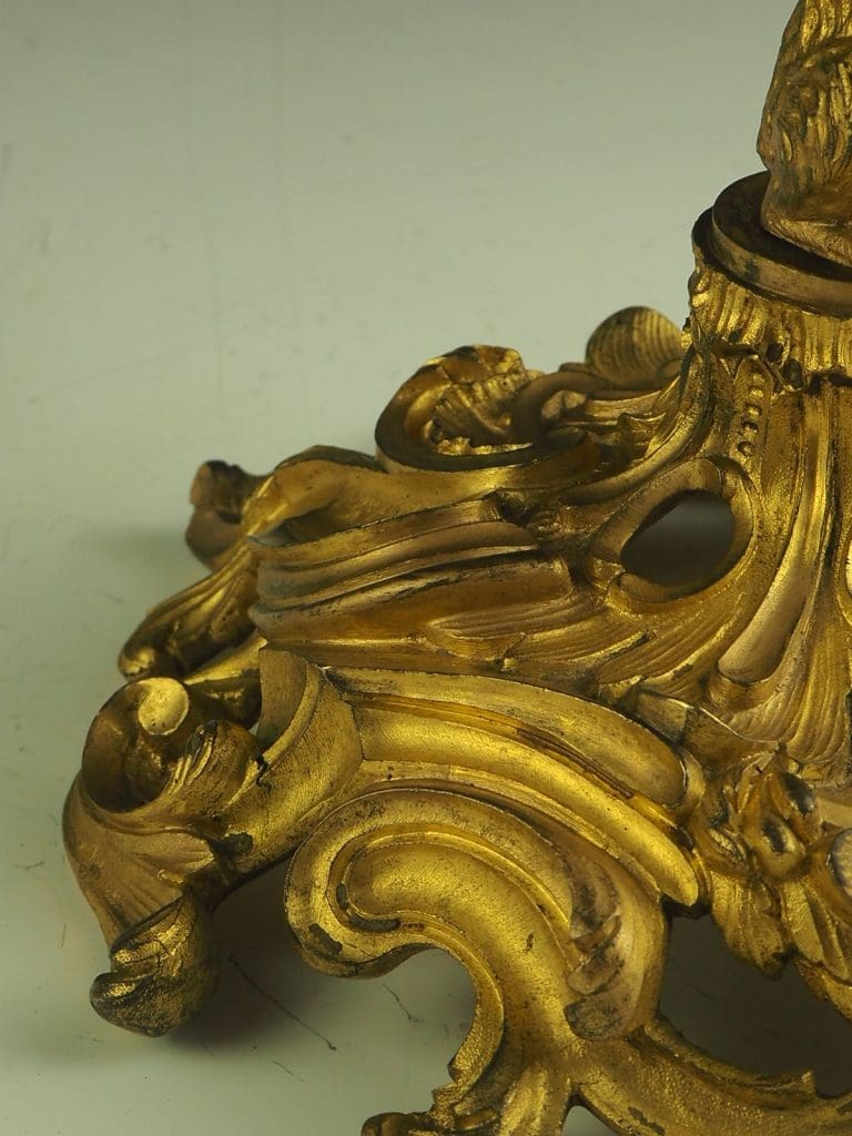 Description 19th Century French Gilt Bronze Satyr Candlestick After Corneille Van Cleve (1647-1732) The candlestick formed as a Satyr seated on a dog and holding a cornucopia terminating in the candle sconce, raised on a heavy pierced rococo base. The design of this candlestick is a variant on a design by the French baroque sculptor Corneille Van Clève.