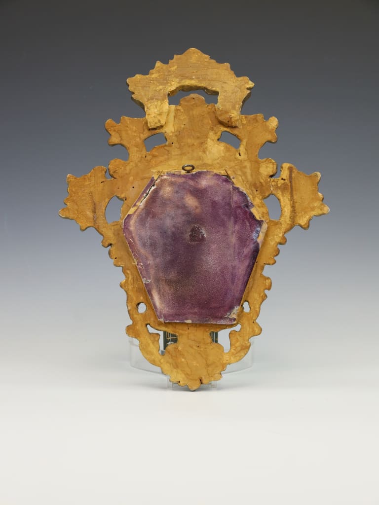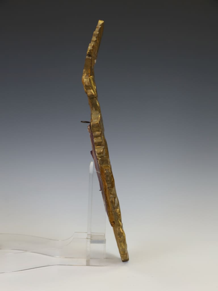The original gilding exhibits a lovely, aged character with minor, stable cracking to the composition at the delicate extremities, consistent with age. There is visible rubbing to the gilt, revealing the warm underlying tones.