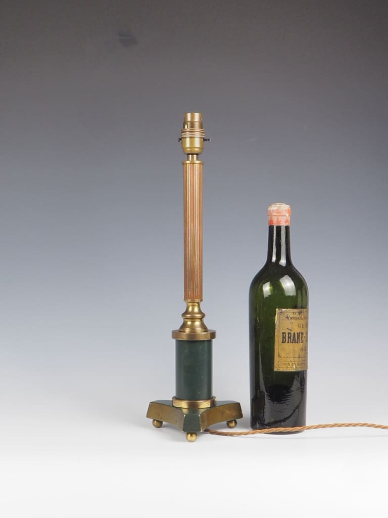 Antique Empire Red and Green Table Lamp is a truly remarkable piece that exudes elegance and sophistication. Its unique design features a striking red column resting on a green pedestal and tripod base, creating a visually captivating contrast. Crafted with meticulous attention to detail, this lamp showcases exceptional quality and durability, making it a valuable addition to any space.