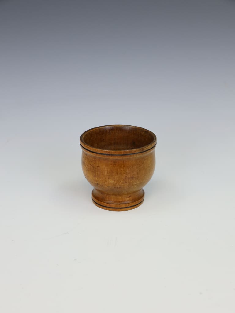 This fine example of Regency-period treen is a testament to the skill of the 19th-century turner. Carved from a single block of dense, slow-grown European Boxwood, the vessel exhibits the tight grain and buttery, honey-toned patina that only two centuries of handling and oxidation can bestow.