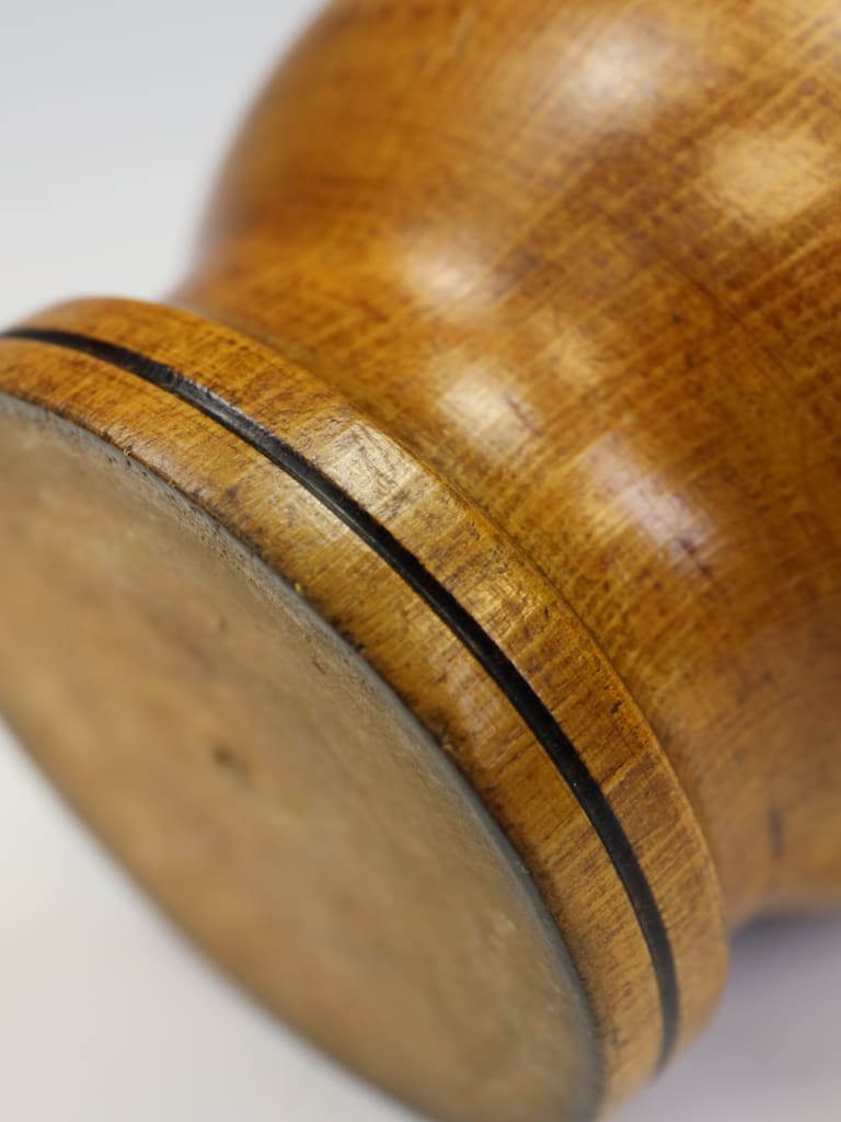 While treen of this nature is rarely signed, pieces of this caliber were typically produced by specialised master turners in major English urban centers like London or Birmingham. In the early 19th century, boxwood was the material of choice for "clean" medicinal use because of its incredible density and lack of resinous odor, which prevented cross-contamination between different medicinal compounds or spices.