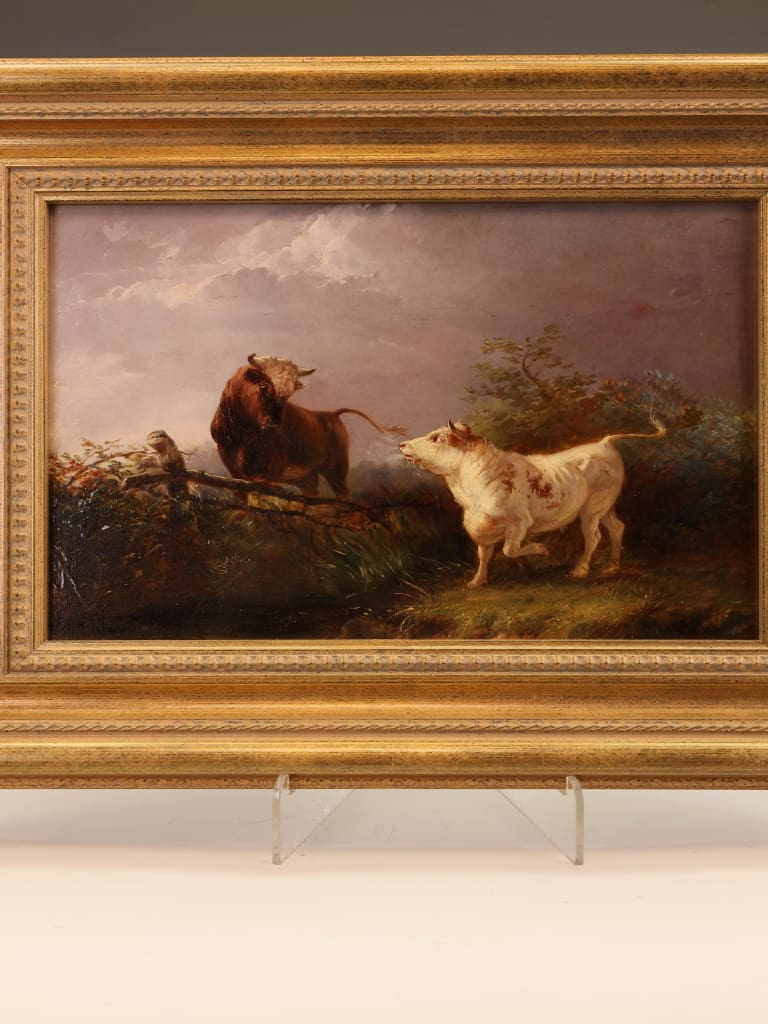 A robust and compelling Victorian oil on canvas by the noted British painter Henry Park (1816–1871). Dated 1857—a pivotal period in the artist's career—this is a superb example of his characteristic animal and genre work. Park, who exhibited frequently at the Royal Academy and the British Institution, was highly regarded for his ability to infuse his animal subjects with dramatic narrative and atmospheric quality.