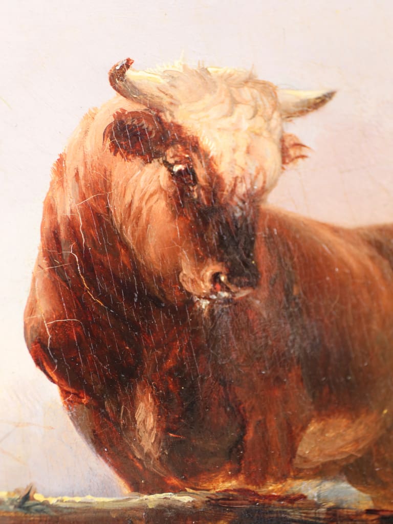 The painting falls squarely within the Mid-Victorian period, demonstrating the era's fascination with realistic and often sentimental or dramatic depictions of the British countryside and its livestock, influenced by painters like Sir Edwin Landseer.
