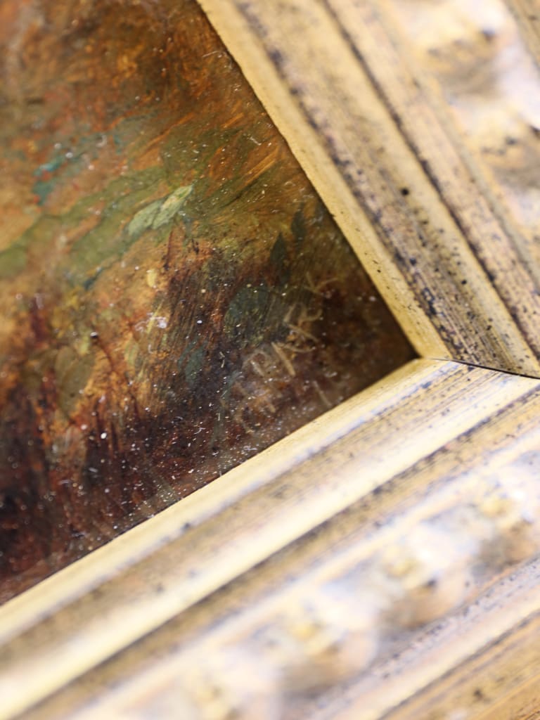 The paint layer is in good, stable condition. The brushwork retains its original texture and lustre. It appears to have been cleaned professionally in the past, with the details sharp and colours strong.