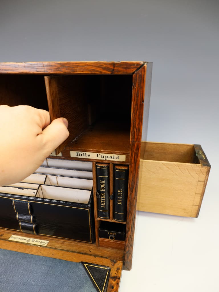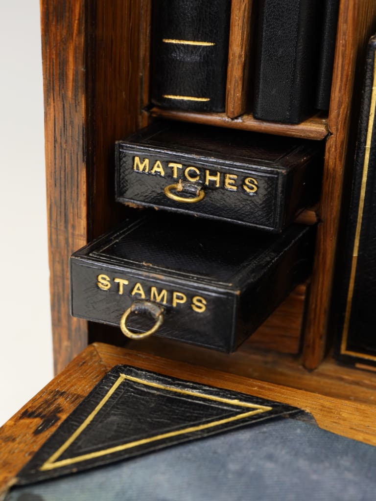 This oak campaign stationery and dispatch chest, by Houghton & Sons, belonged to Maunsell Mark Prendergast, a career officer who served for 32 years in the Indian Army, rising to the honorary rank of Major-General upon retirement. The chest is accompanied by a personal diary whose contents allow the object to be firmly linked to Prendergast and place it within both his military and domestic life.